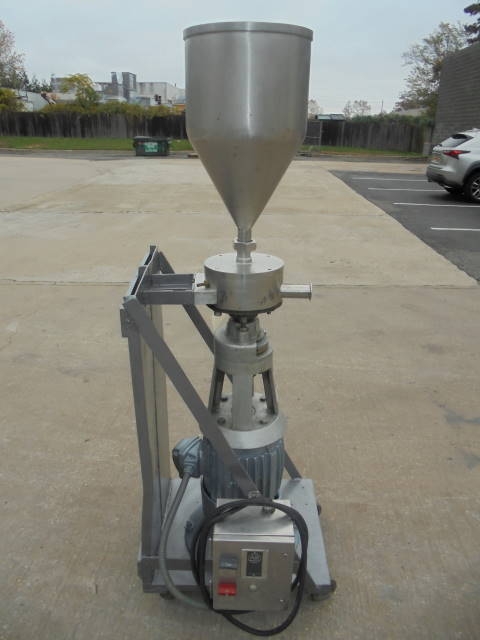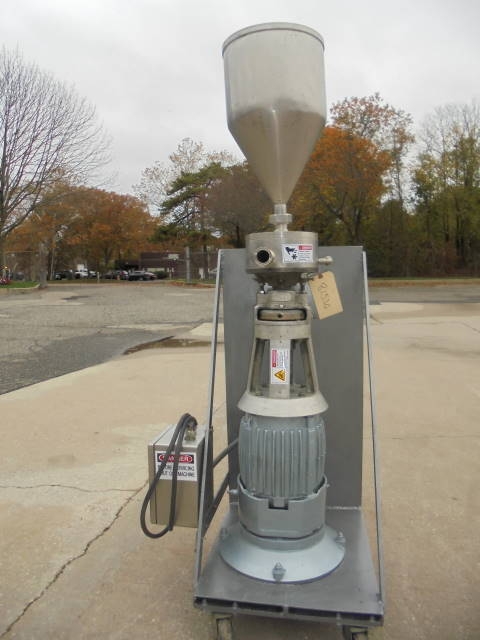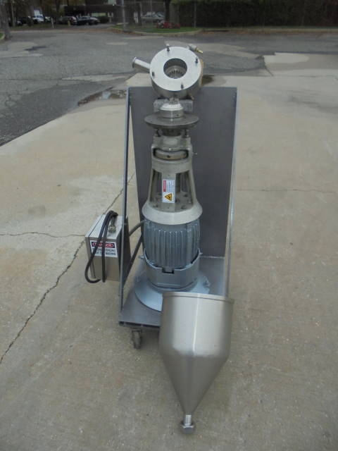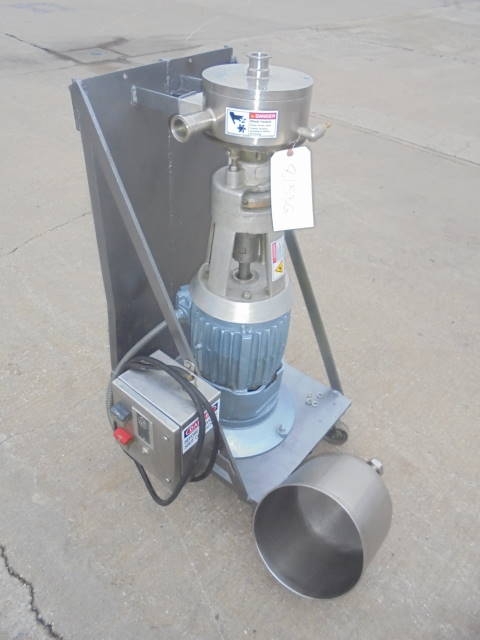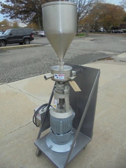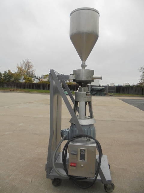 1-Used Gifford Wood Model VT-8 Stainless Steel Colloid Mill, S/N A-8-1-7004. Presently in a vertical position, machine has secondary base so it can be used as a horizontal inline unit as well. On portable base, machine driven by 5 HP 3/60/230 volt explosion proof motor with stainless steel contact parts. Unit has tri-clamp inlet and outlet ports. (Stock # 8153G)