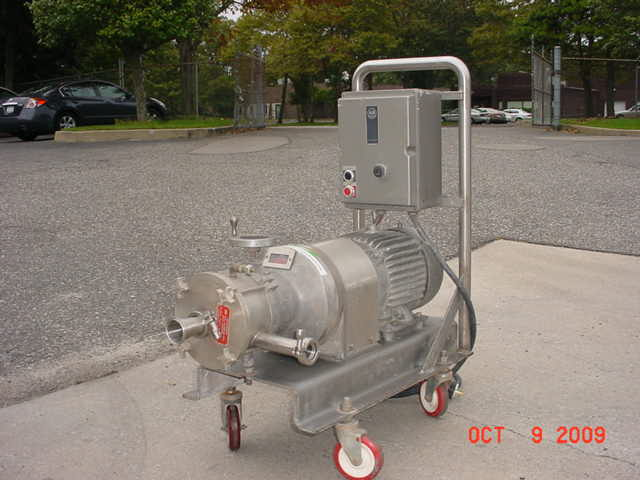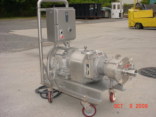 1-USED GREERCO MODEL W500H STAINLESS STEEL HORIZONTAL INLINE COLLOID MILL S/N 320-30-54-B. MOUNTED ON PORTABLE BASE WITH CASTERS, MILL IS DRIVEN BY 10 HP, 3 PHASE, 60 CYCLE, 230/460 VOLT EXPLOSION PROOF MOTOR. EQUIPPED WITH ALLEN BRADLEY PUSH BUTTON STARTER BOX.
