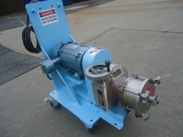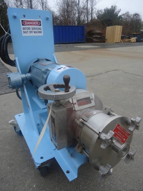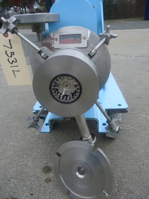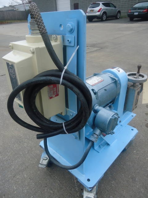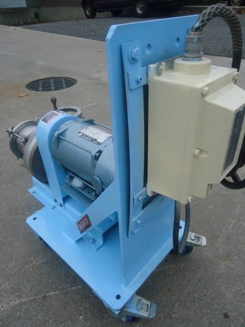 1-USED GREERCO MODEL W250V-B STAINLESS STEEL INLINE COLLOID MILL, S/N 0339-3190.  ON PORTABLE BASE WITH CASTERS, UNIT DRIVEN BY 2 HP 3/60/208-230 VOLT 3450 RPM EXPLOSION PROOF MOTOR.  WITH ALLAN BRADLEY EXPLOSION PROOF STARTER BOX.  (STOCK # 7531L)