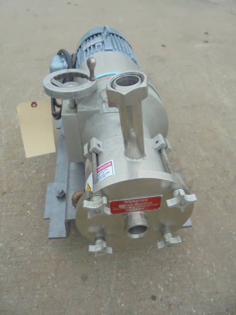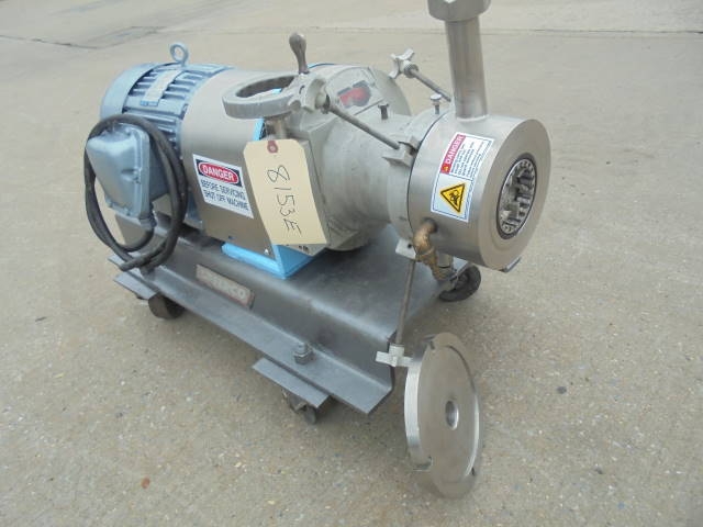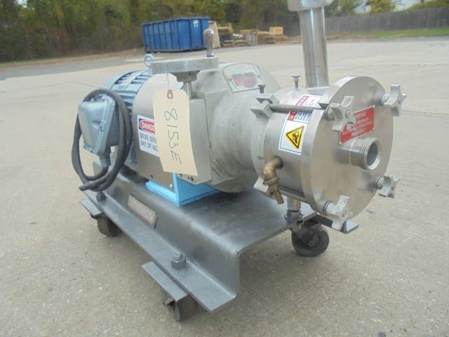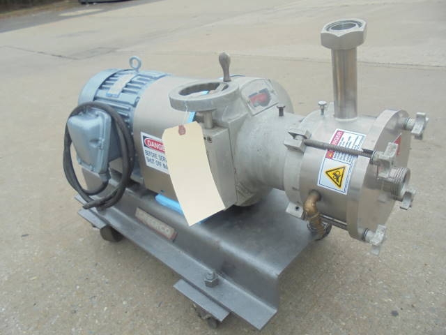 1-Used Greerco Model W500H Stainless Steel Horizontal Inline Colloid Mill, S/N 85-0320-2213. On casters for portability, machine is mounted on base and driven by 10 HP, 3/60/230-460 Volt 3475 RPM XP motor. (Stock #8153E)