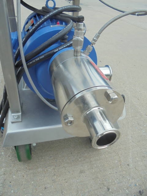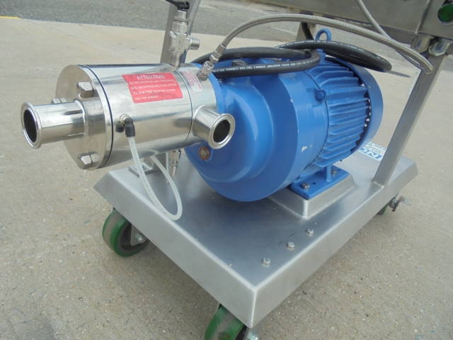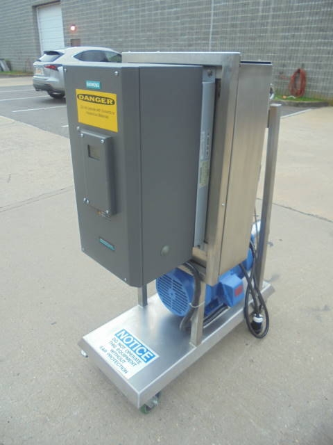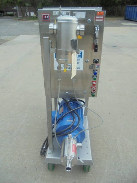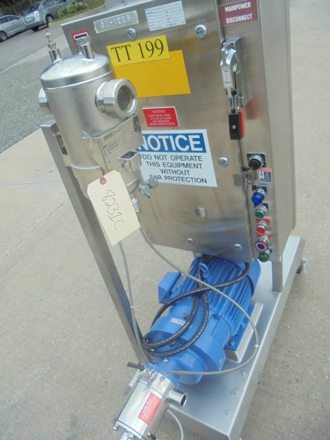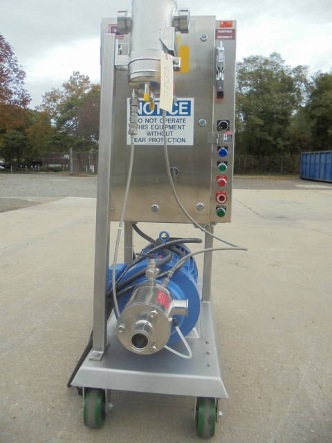 1-Used IKA Model DR3-6/A Stainless Steel Inline High Shear, High Speed Disperser/Mixer, S/N 0827. On portable stand with casters, this Inline Unit has 3-stage rotor and is driven by 7.5 HP 3/60/208 volt motor. Equipped with Cutler Hammer Stainless Steel Control Panel/Starter Box. Unit also has Siemens “Midimaster”Vecter Control Box and Aerni Model AR-139 Pressure Tank. Last used in pharmaceutical application. (Stock # 8231C)