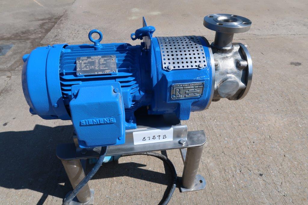 1-Used Ross Model HSM-410 Inline High Shear Mixer, S/N 103787. With type 316 Stainless steel rotor/stator, machine is are driven by 10 HP, 3/60/230-460 Volt, 3520 RPM motor. With 4 In. diameter rotors, machine is rated up to 240 gallons/minute, depending on viscosity of product. (Stock #8789B)