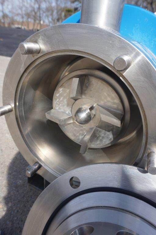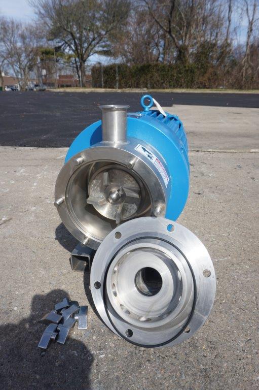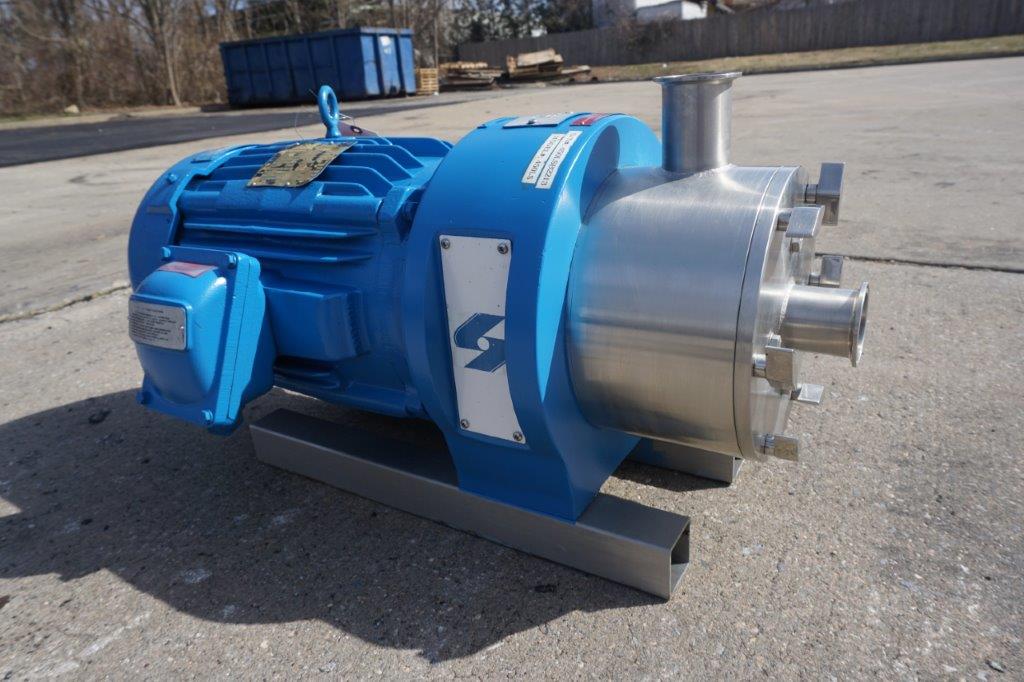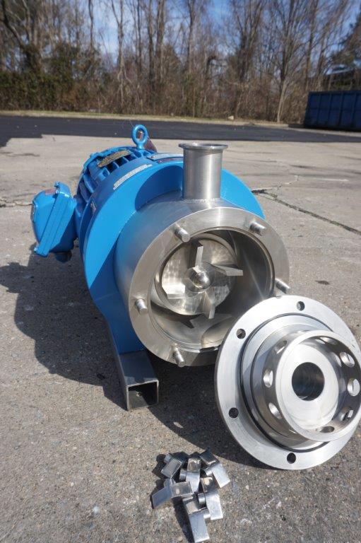 1-Used Silverson Model 450LS Stainless Steel Inline High Shear Mixer, machine number 450LSB2213. Equipped with general purpose disintegrating head, machine is driven by 10 HP, 3/60/208-230/460 Volt 3,525 RPM Explosion Proof Motor. With approximately 2 In. diameter Tri-clamp inlet and outlet ports. (stock # 8487)