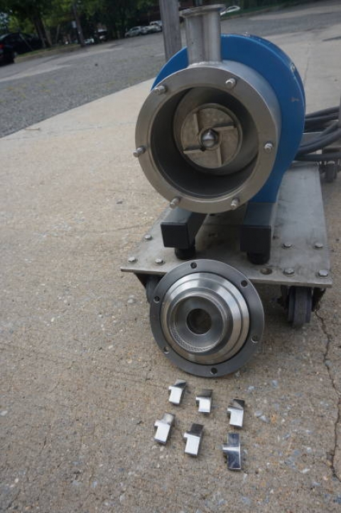 1-Used Silverson Model LS275 Stainless Steel Inline High Shear Mixer. Mounted on portable base with casters, machine has “tri-clamp” inlet and outlet ports measuring approx. 1-1/2 in. diameter. Driven by 2 HP, 3/60/208-230/460 volt 3450RPM motor. Equipped with square hole high shear screen which is suitable for preparation of emulsions, gels and thickeners, as well as fine colloidal suspensions. (Stock #8299)