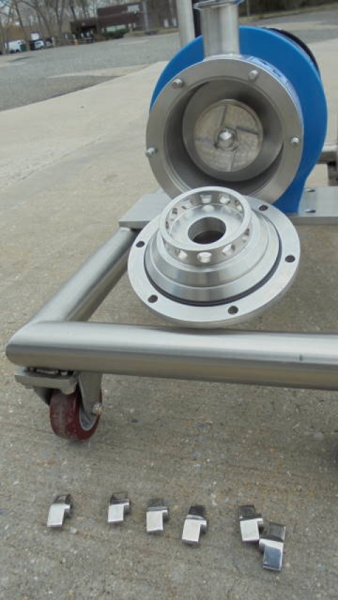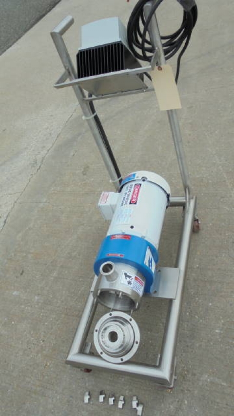 1-Used Silverson Model LS275 Stainless Steel Inline High Shear Mixer, Machine Number 275LSB1485. Mounted on stainless steel portable base with casters, machine has “Tri-Clamp” inlet and outlet ports. Driven by 3HP 3/60/208-230/460 volt 3500RPM motor. Equipped with Lenze AC Tech Variable Frequency Drive for variable speed operation of unit. ( Stock # 8184A)
