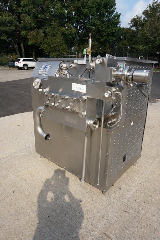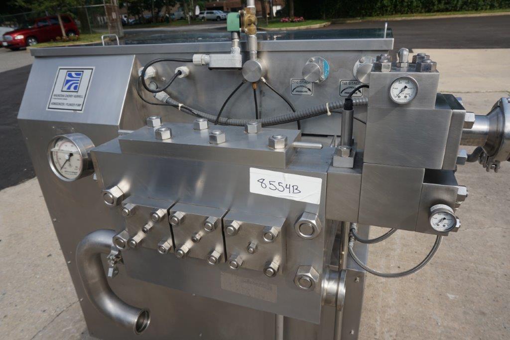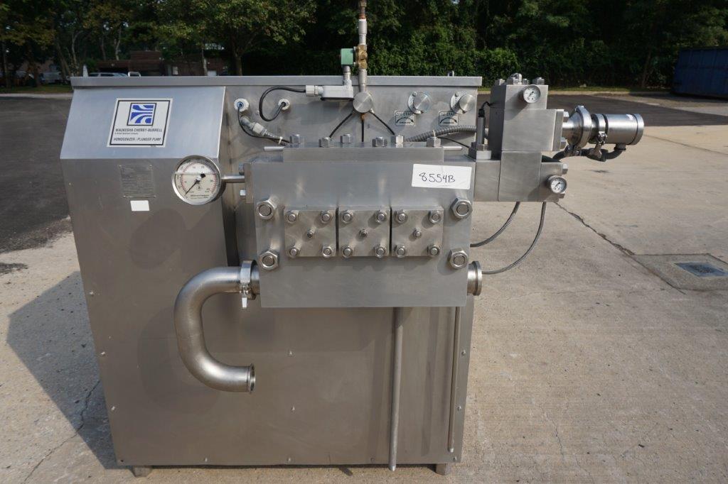 1-Used Waukesha/Cherry Burrell model 3000 Homogenizer/Plunger Pump, S/N 24943799. With stainless steel cabnetry, homogenizer is rated up to 2,400 gallons/hour at operating pressure of 2,600 PSI. Last used in the dairy industry, machine has 75 HP drive motor.(Stock # 8554B)