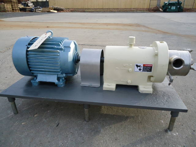1-Used waukesha model “sp” stainless steel inline shear pump, s/n 205. Suitable for blending, mixing, emulsifying, texturizing and smoothing. Shear pump is on common base with 10 hp 3/60/23-460 volt motor. (stock #7440a)