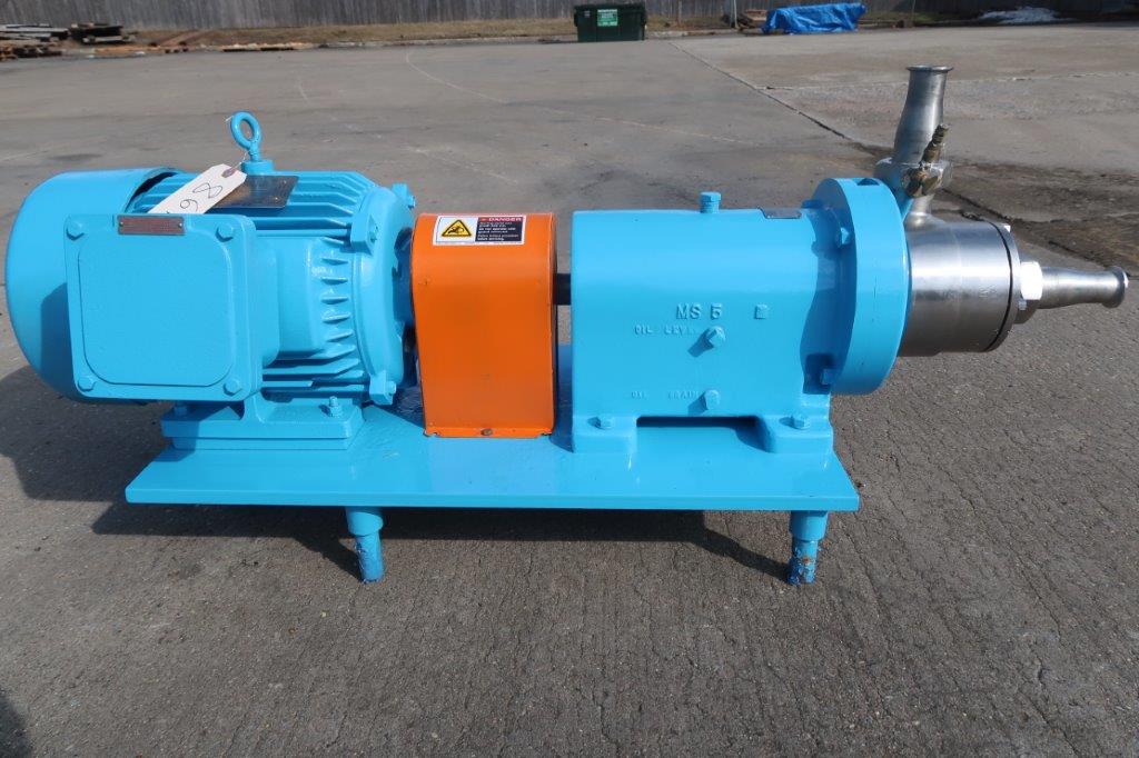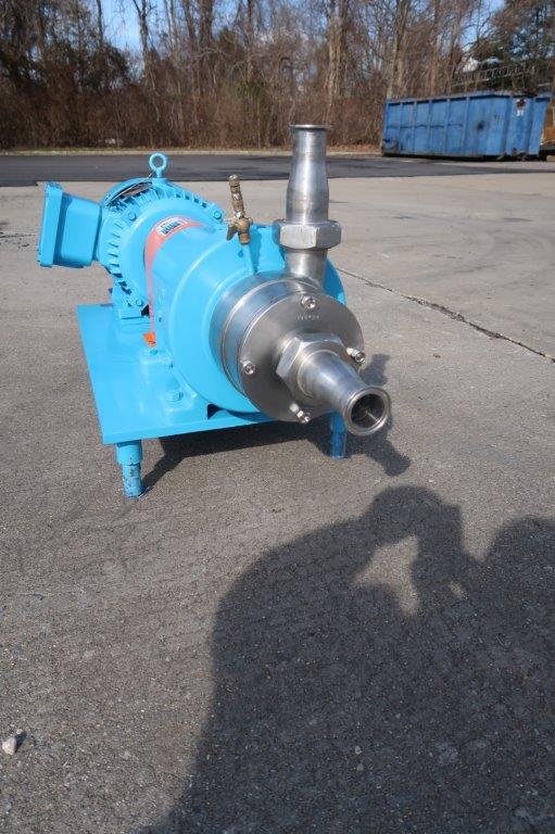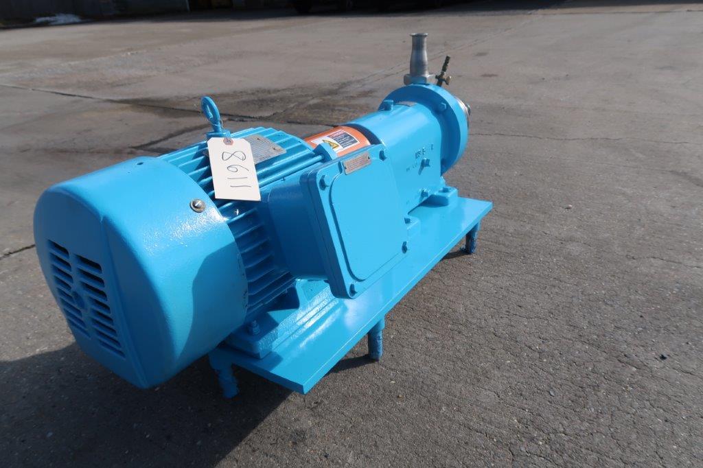 1 – Used Waukesha Model SP4 Stainless Steel Inline High Shear Pump/Emulsifier, S/N 138416. Suitable for blending, mixing, emulsifying, texturizing and smoothing, this shear pump is driven by 10 HP 3/60/230-460 volt 3440 RPM explosion proof motor. Equipped with inlet and outlet tri-clamp connections. (Stock # 8611)