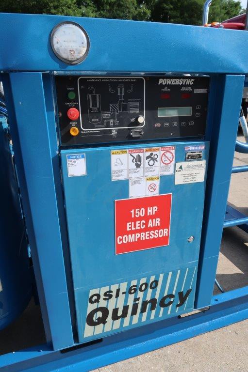 1-Used Quincy Model QSI-600-ACA32EB Air Compressor, Serial Number 913745. Driven by 150 HP, 3/60/460 Volt motor, unit has “Powersync” front mounted digital controls and comes equipped with radiator. (Stock #8670)