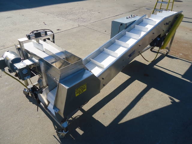 Air-Draulic Inclined Cleated Belt Conveyor With Automatic Dump, Stainless Steel