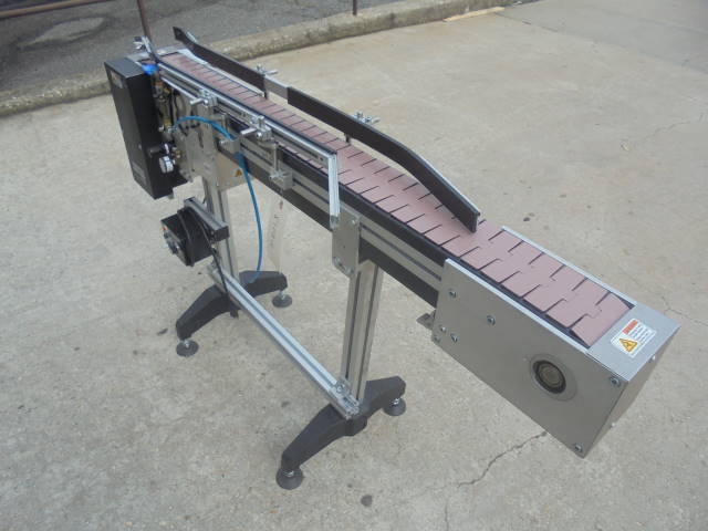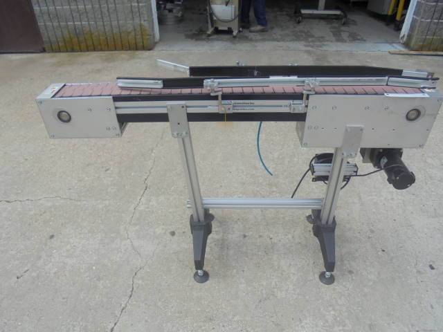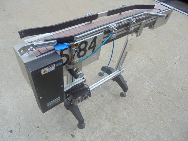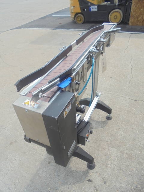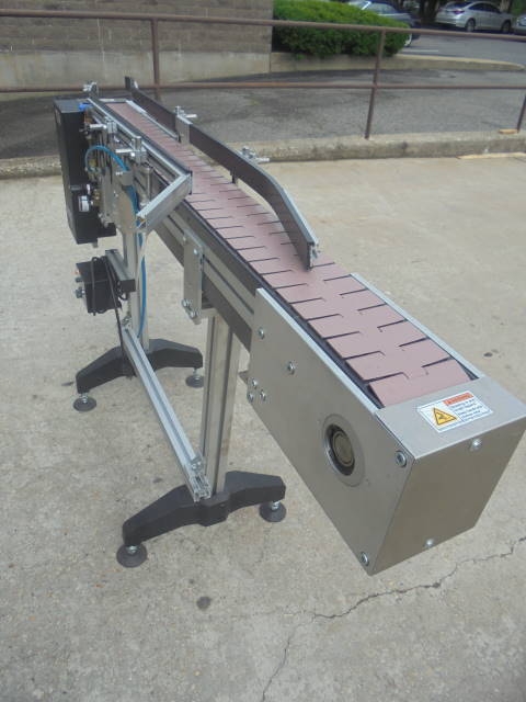 1-Used MK Automation 4-1/2 in. wide X 60 in. long Motorized Bottle Conveyor, S/N 6330. Equipped with single phase with variable speed control. On legs, Conveyor has tabletop conveyor chain. Last used in pharmaceutical environment. (Stock #8108Q)