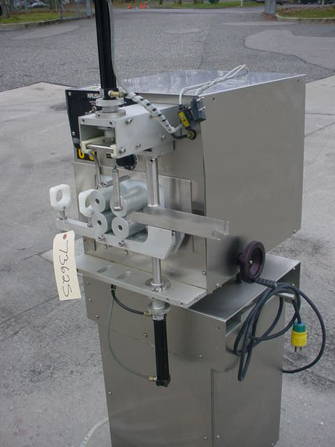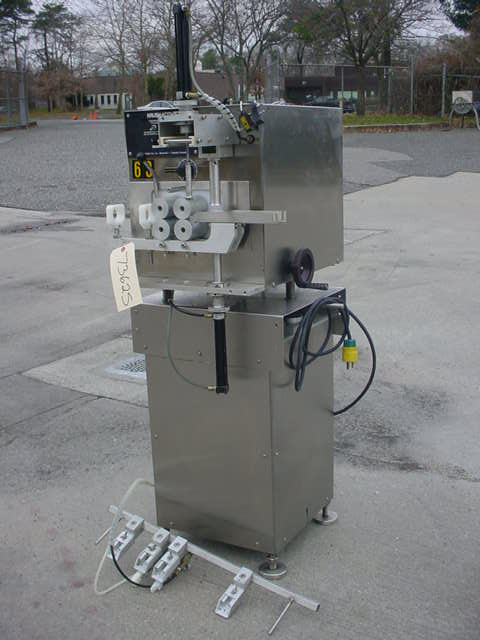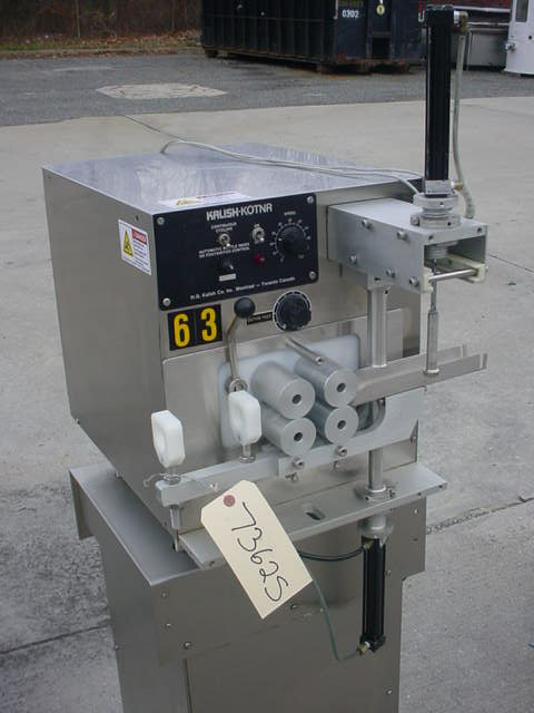 1-USED KALISH "KOTNER" MODEL 93000 COTTON INSERTING MACHINE, S/N 7890, BATCH NUMBER 1559. ON STAINLESS STEEL BASE, UNIT DRIVEN BY SINGLE PHASE, 60 CYCLE, 110 VOLT MOTOR. SUPPLIED WITH PNEUMATIC INDEXING CYLINDERS AND ELECTRIC EYE FOR BOTTLE REGISTRATION.