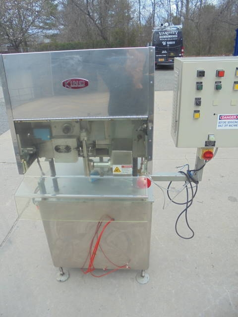 1-Used King Model CF100RL Stainless Steel Automatic Cotton Inserting Machine, S/N 342. Rated up to 100 bottles per minute, Cottoner has self-contained starter box and operates on 3/60/220 volt electrics. Can be supplied with Conveyor at additional cost. (Stock #8087G)