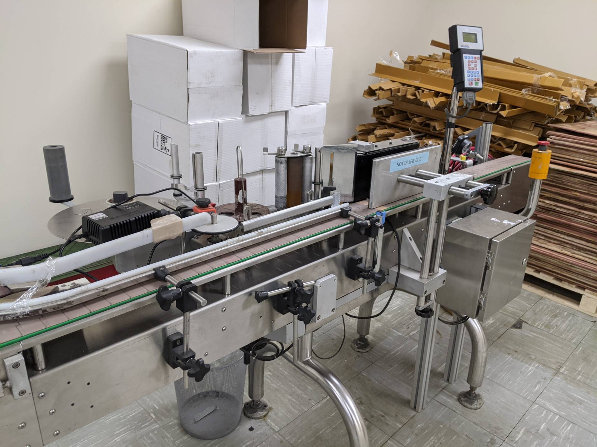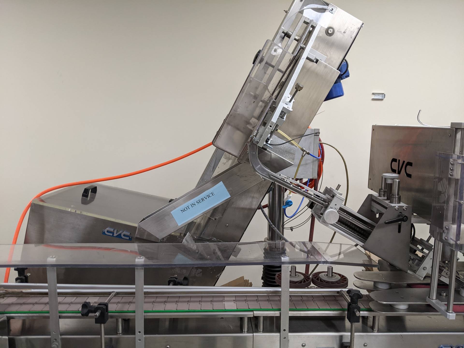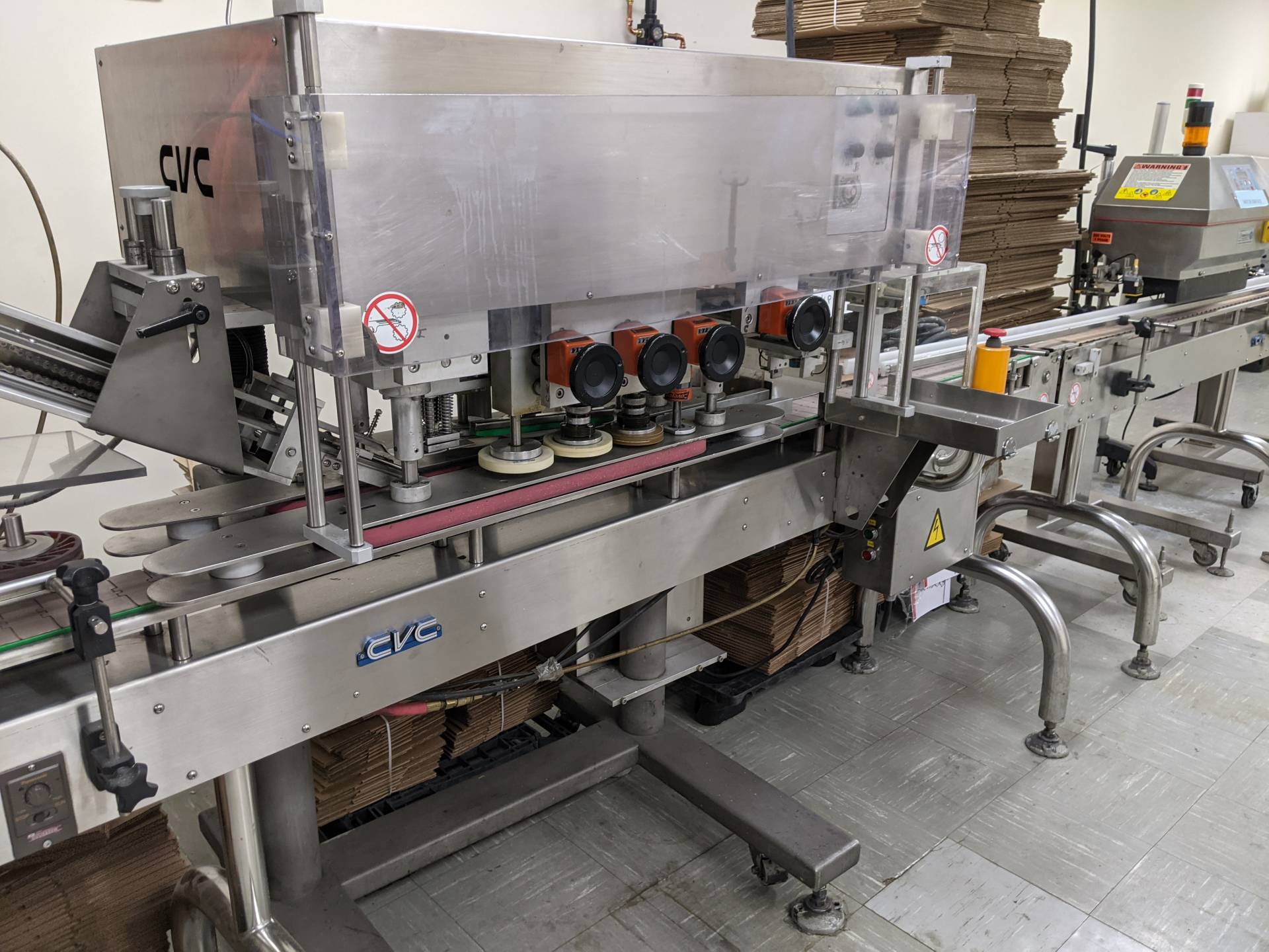1-Used CVC Tablet/Capsule Bottling Line.  Consisting of 36 Inch Diameter Rotary Unscrambling Table, CVC Model 1220 Automatic Channel Counter with Conveyor, CVC Six Spindle Automatic Screw Capper (equipped with CVC Cap Elevator), Automate Technologies AM-250 Cap Induction Sealer, Tronix Ink Jet Coder and CVC Model 300 II Pressure Sensitive Spot/Wrap Around Labeler.   Line last packaging pharmaceutical OTC products.  This Line equipped with interconnecting Conveyors.  (Stock #L1396)