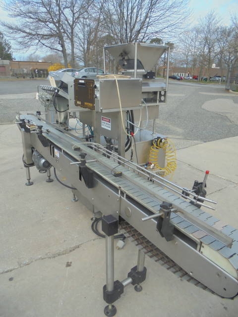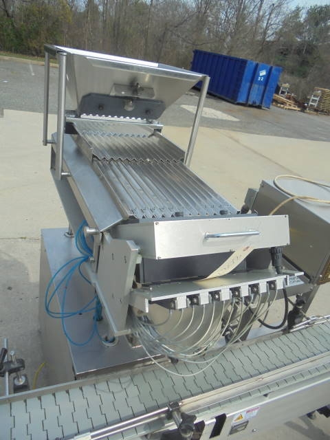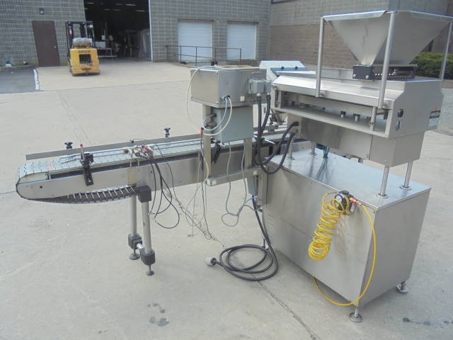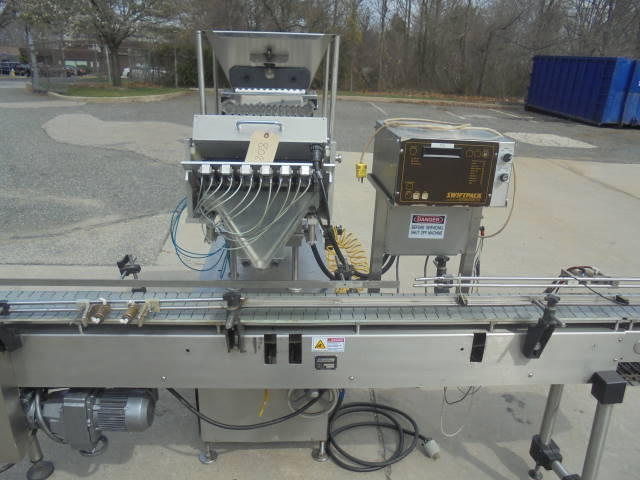 1-Used Kalish “Swift Pack” SPC-12P Automatic Tablet/Capsule Channel Counter, S/N M286. This Twelve Lane Counter has Swift Pack Automation Control Panel, as well as approx. 140 in. long Stainless Steel Indexing Conveyor. Conveyor has approx. 7-1/2 in. wide Plastic Conveyor Chain and is separately driven by fractional horsepower variable speed drive. (Stock #8087C)