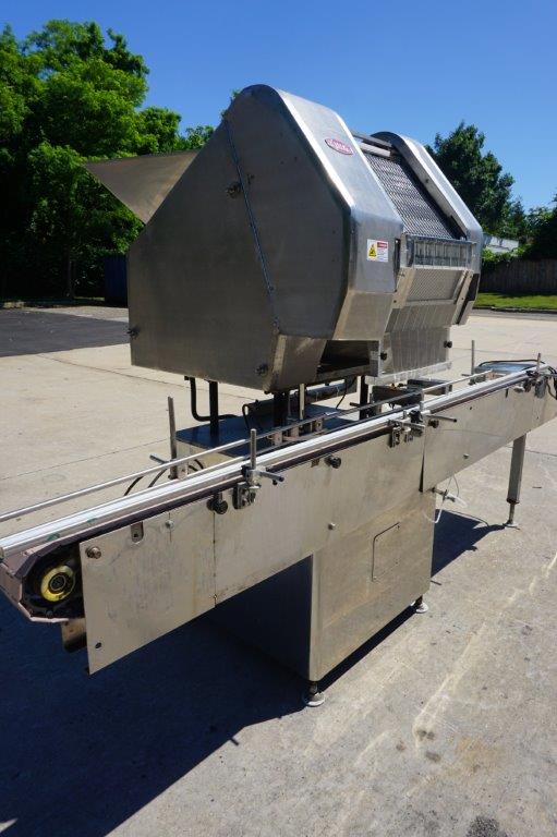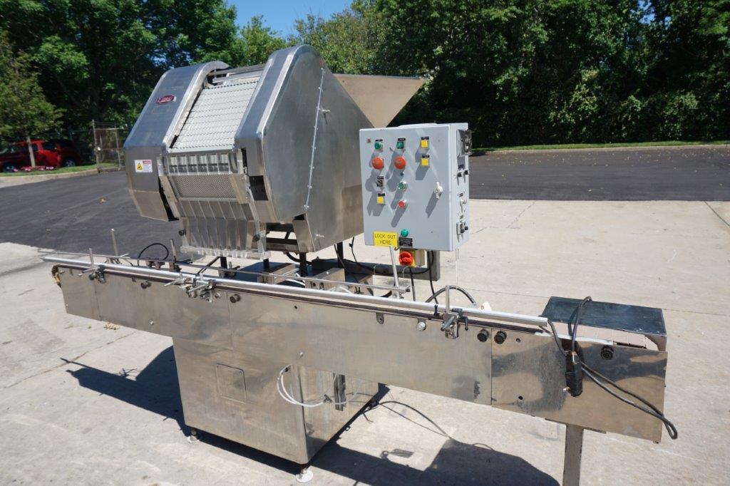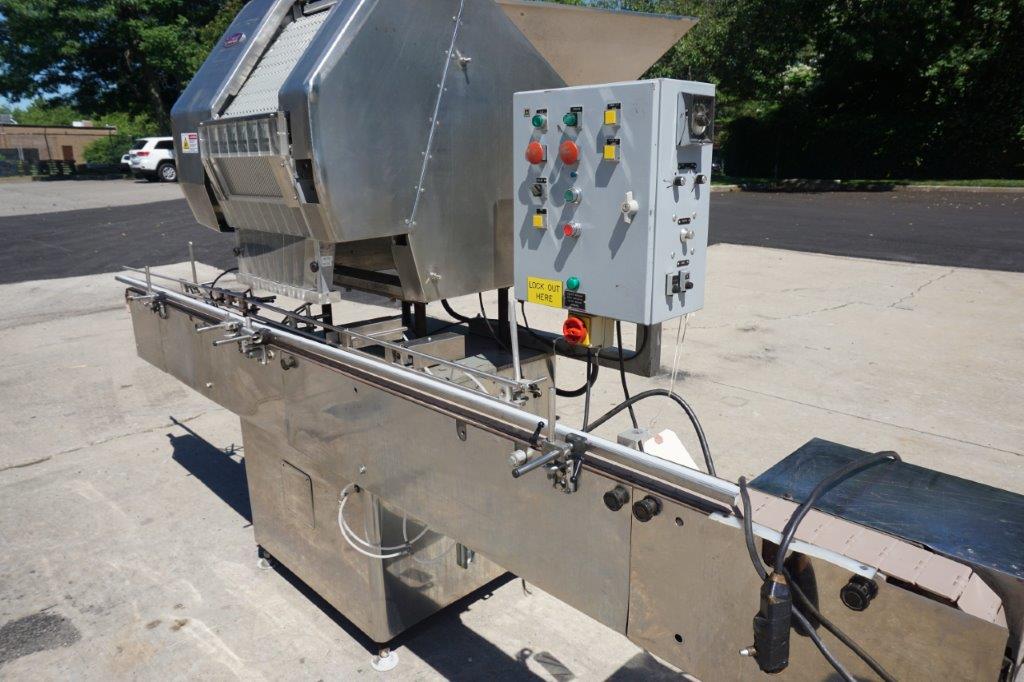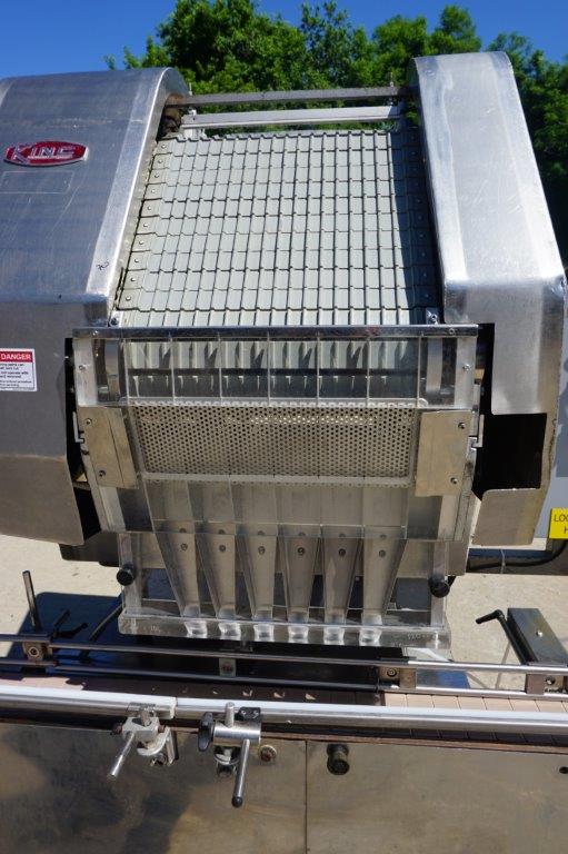 1-Used King Model SC6L Automatic Slat Counter, S/N 143. Rated up to approx. 120 containers per minute, depending on the size of tablet or capsule being counted. With self-contained control panel, machine is equipped with approx. 110 inch long conveyor with pneumatic indexing and plastic table top chain. Electrical specification 3 phase / 60 cycle / 220 volt. (Stock # 8514D)
