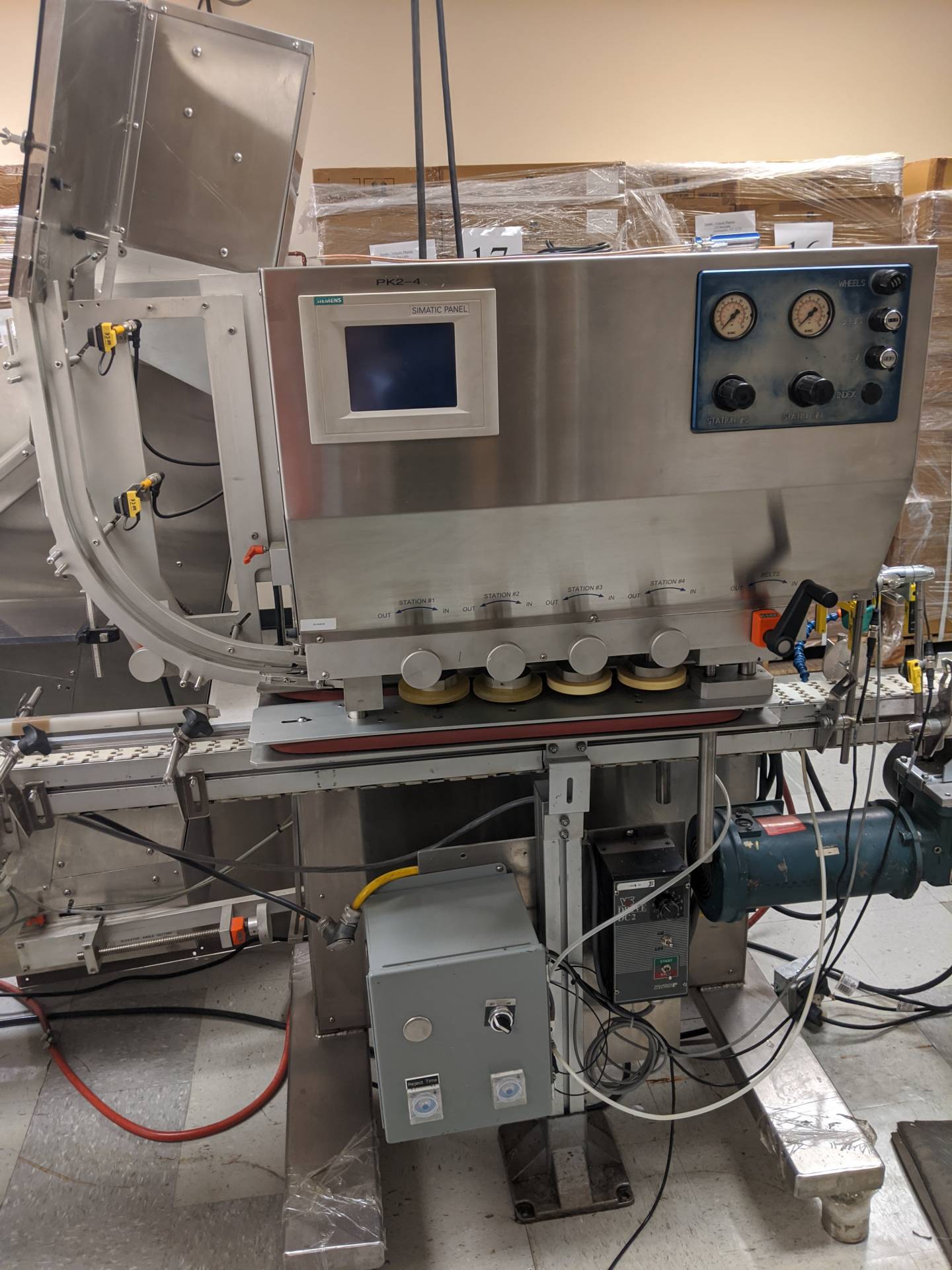1-Used Tablet/Capsule Automatic Bottling Line.  Last used in packaging OTC products in various size bottles, line consists of Omega Automatic Plastic Bottle Unscrambler, Modular Packaging Six Head Automatic Counter, DL Tech Eight Spindle Screw Capper with Elevator, Pillar Technologies Cap Induction Sealer and NJM Auto Colt II Pressure Sensitive Spot/Wraparound Labeler.  (Stock #L1384)