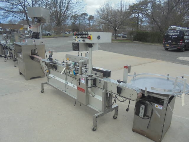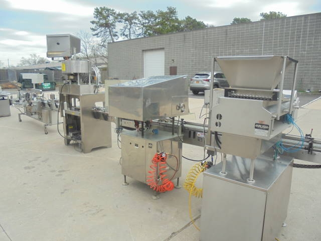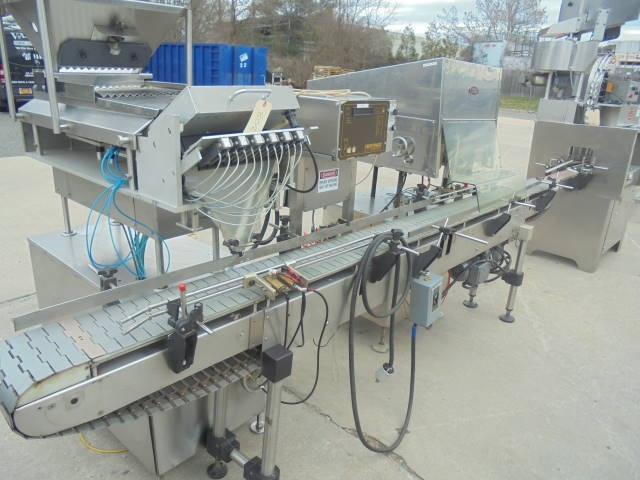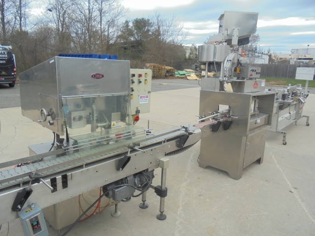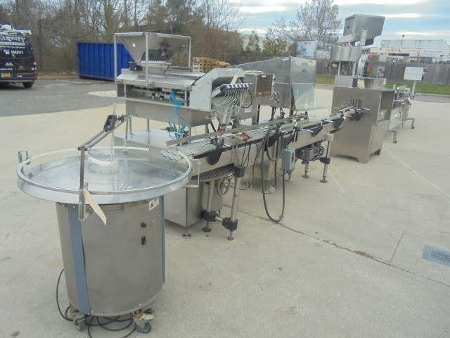1-Used Tablet/Capsule Automatic Bottle Packaging Line. Line used for the packaging of nutritional supplements, line consists of 36 In. Diameter Unscrambling Table, Kalish “Swift Pack” SPC-12P Twelve Lane Counter With Indexing Conveyor, King Model CF100 Cottoner, Kaps-All G-A Six Spindle Capper, Accraply 350PW Pressure Sensitive Spot/Wrap Around Labeler and 36 In. Diameter Rotary Accumulating Table. Additional equipment like Axon Sleever and/or Enercon Induction Sealer can be provided at additional cost. Further specifications available upon request. (Stock #8087H)