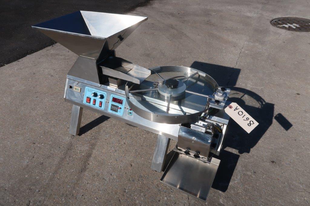 1-Used Versacount Model 741R Tabletop Stainless Steel Electronic Tablet/Capsule Filler-Counter, S/N 1724. Equipped with Dietz Model PC3 dual power controller, this counter has single phase, 50/60 cycle, 115 Volt electrics. (Stock #8610A)