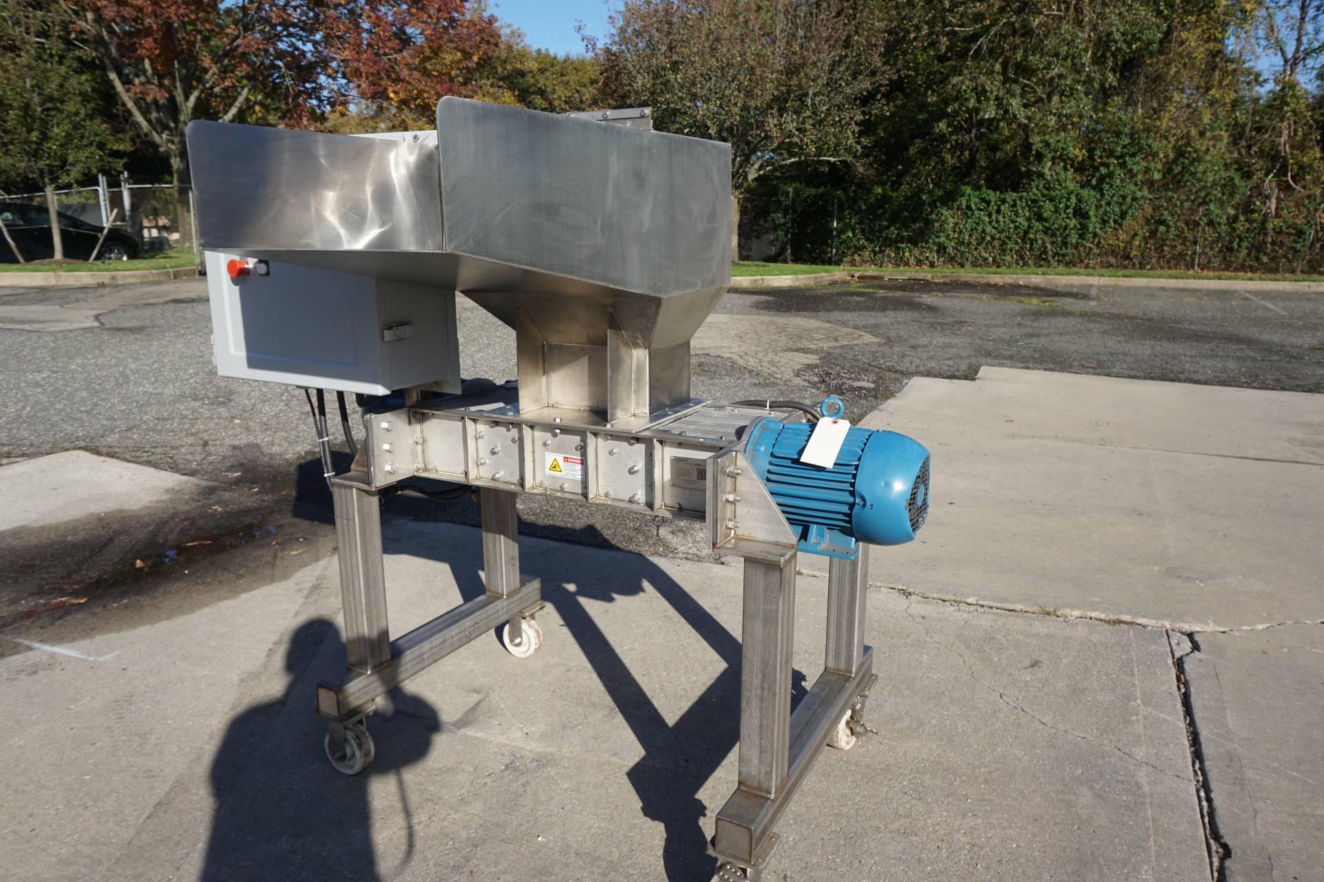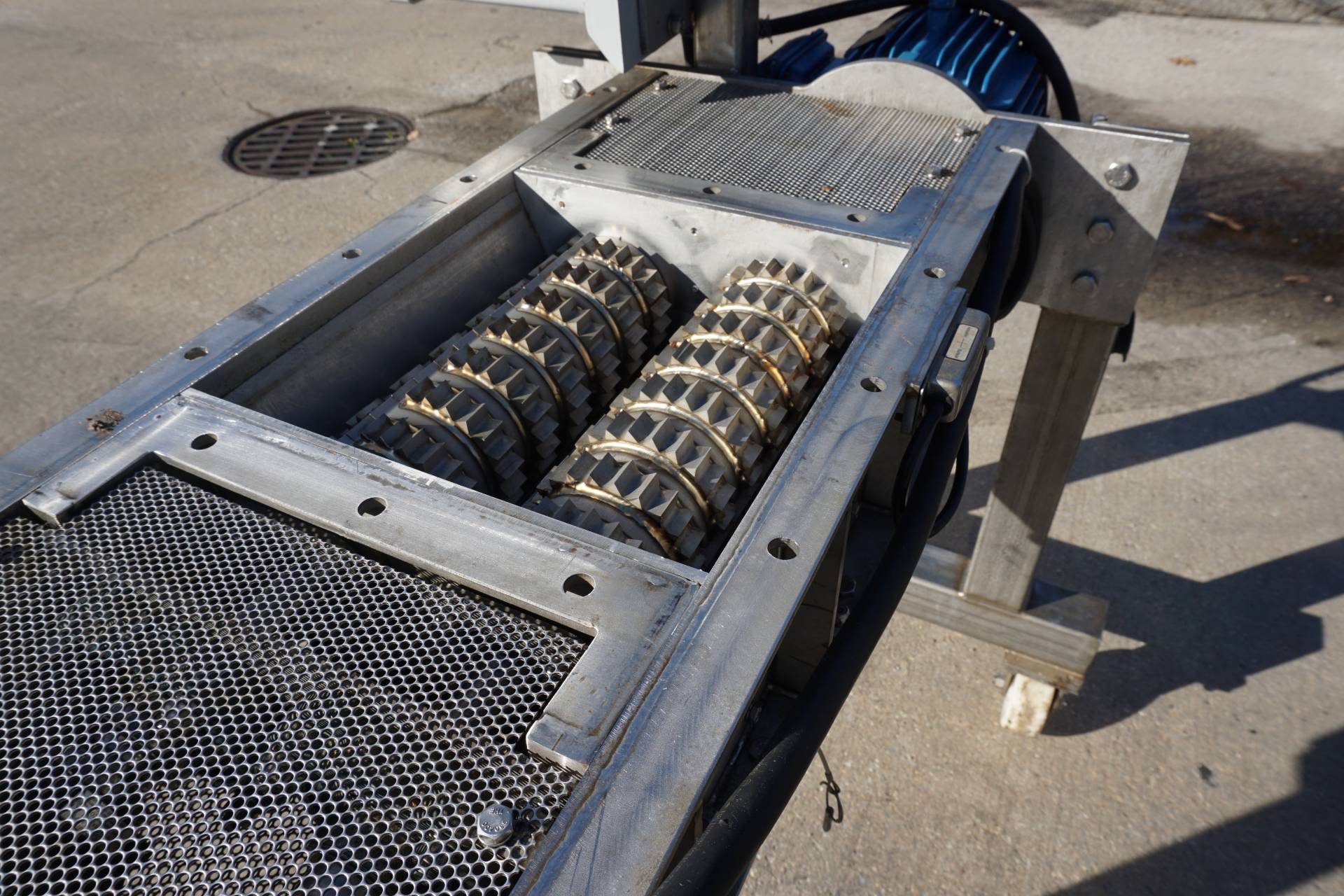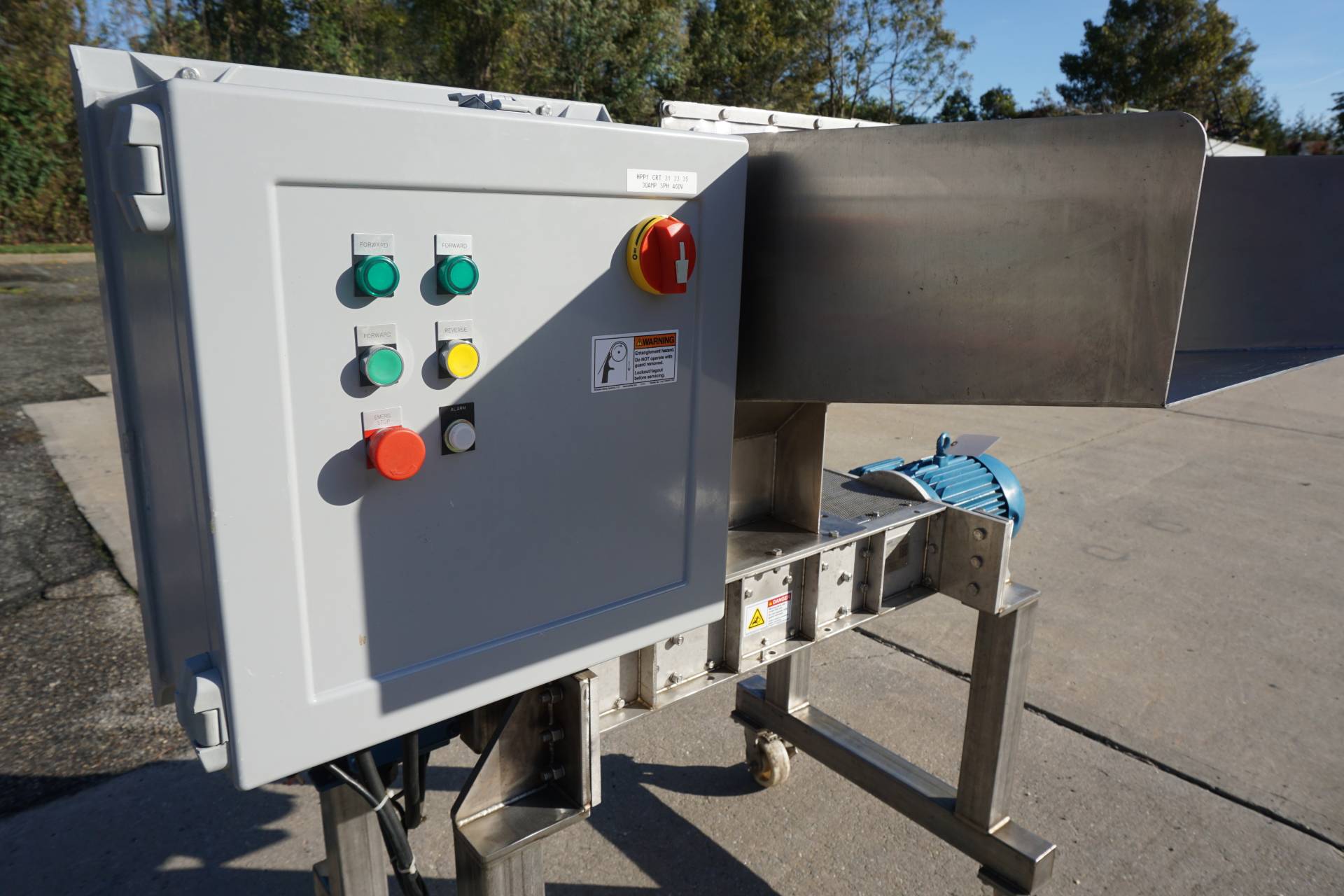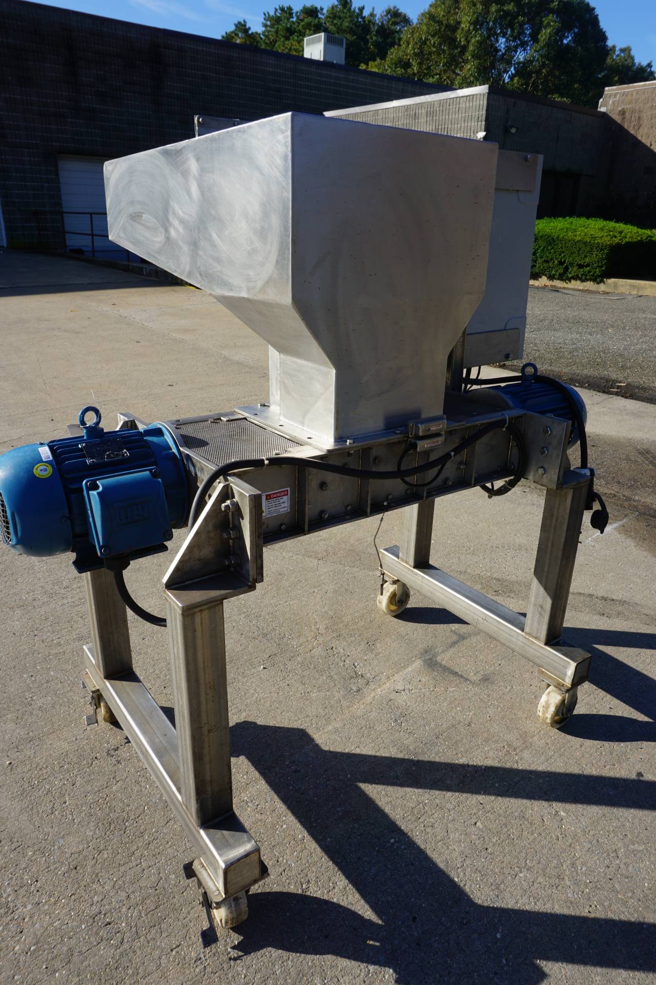 1-Used Atlantic Coast Crushers Stainless Steel Two Roll Mustard Seed Crusher, Model PS1212-2, machine number 6198. Equipped with two approximately 5 In. diameter crushers, each individually driven by 3HP 3/60/230-460 Volt motors. On stainless steel with casters for portability, machine has front mounted control panel and top mounted stainless steel product hopper. Last used for crushing/pressing Mustard Seeds. (Stock# 8430)