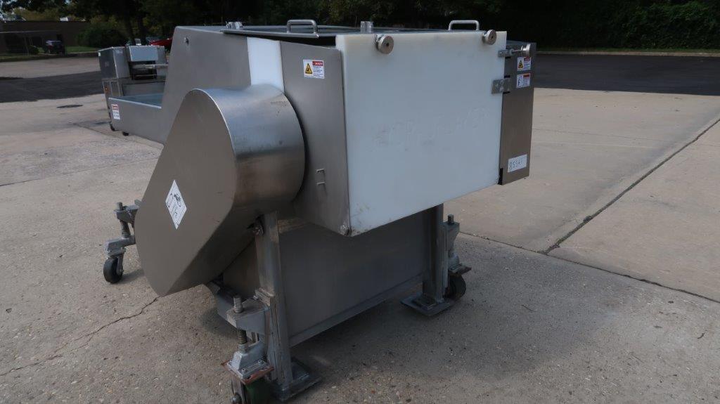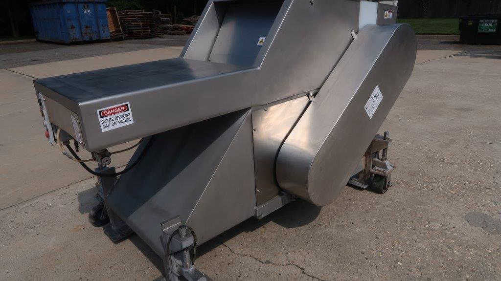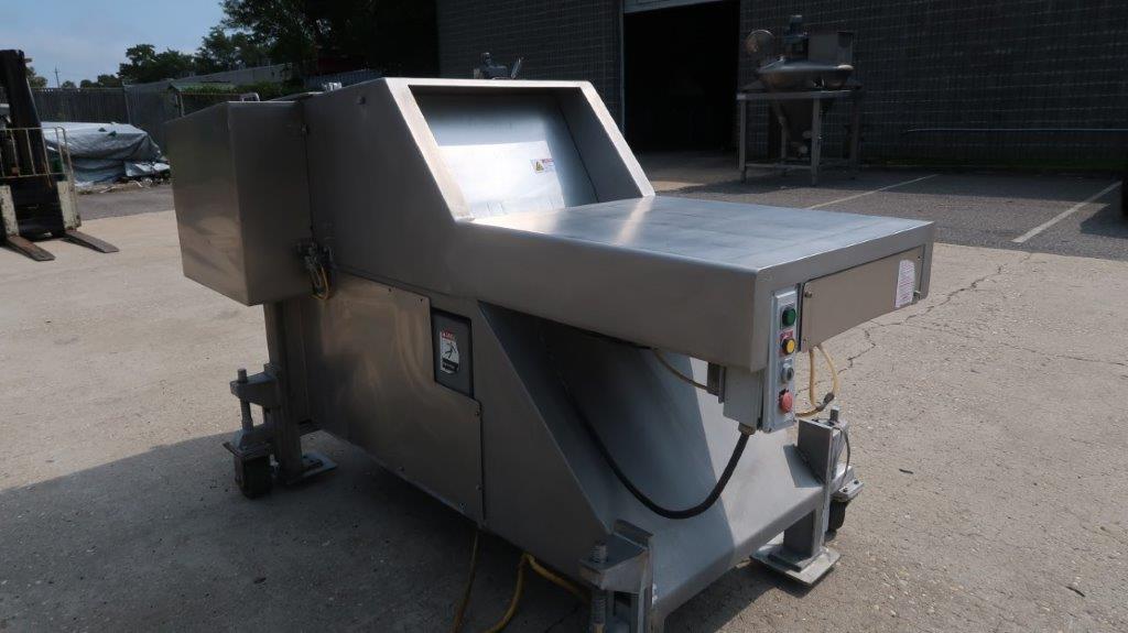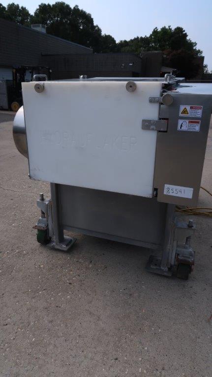 1-Used Genmac Hydrauflaker Combination Frozen Meat Block Flaker/Slicer.  Cutting drum measures approx. 14 In. Diameter x 29 In. Long. Machine is suitable for reducing frozen or hard blocks of meat, poultry, fish, cheese, chocolate, etc. With stainless steel cabinetry, machine was last used at major food processing facility. Driven by 10HP 3/60/220 Volt motor. (Stock #8554i)