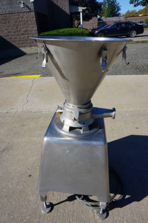1-Used Stephan Model MC-15 Microcut Cutter/Emulsifier, S/N 730.323.01. Driven by 11kW (15HP) 220 volt electric motor. Last used in the cheese industry, machine is equipped with top-mounted stainless steel conical hopper. (Stock #8312D)