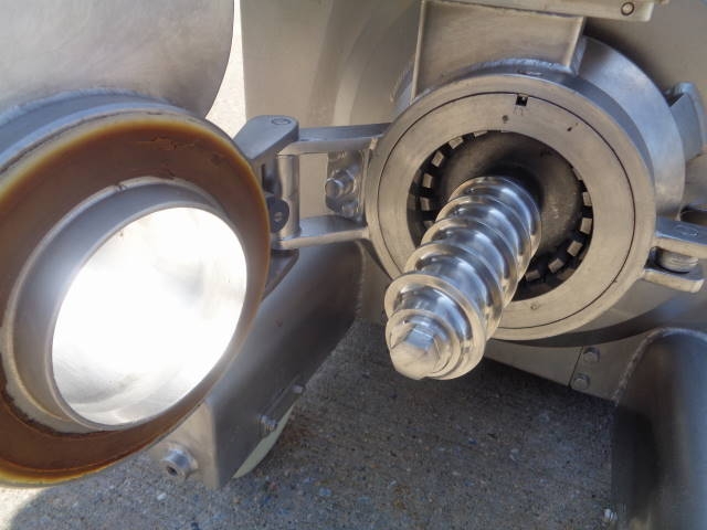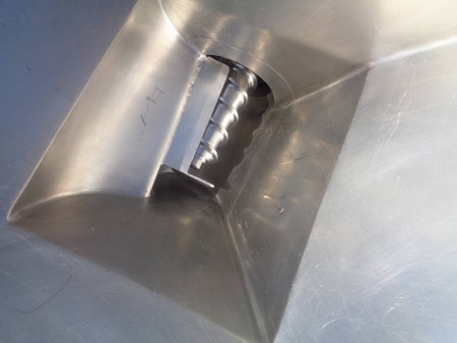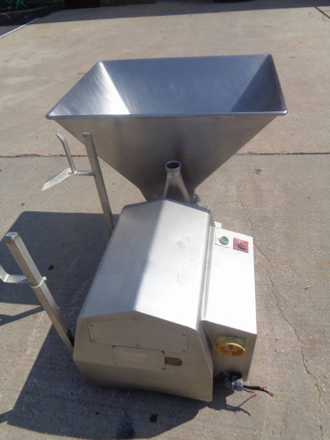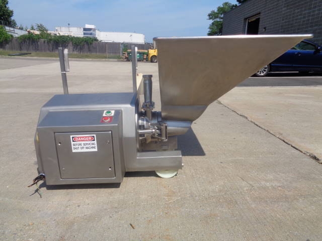 1-Used Stephen Model MCH-20 Stainless Steel Microcut Machine, Machine #715.652.01. Driven by 15 Kw. 3/60/220 volt motor. With top mounted stainless steel feed hopper, this model is rated up to 1,200 kilos per hour, depending on product characteristics. (Stock #8025A)