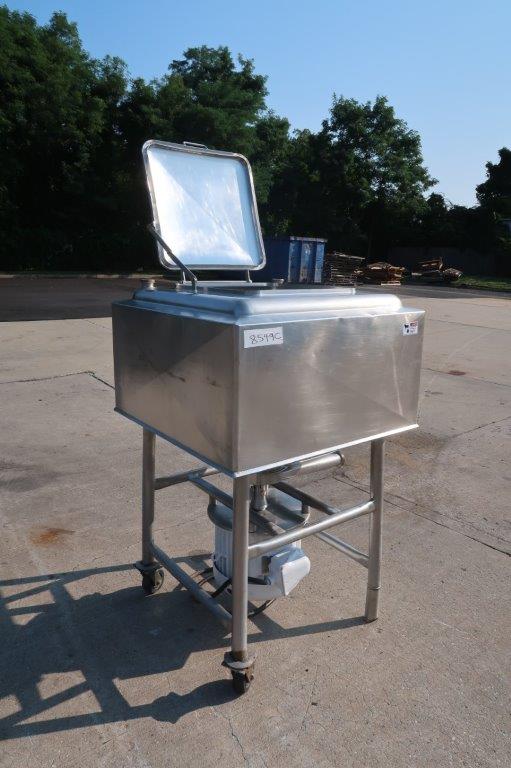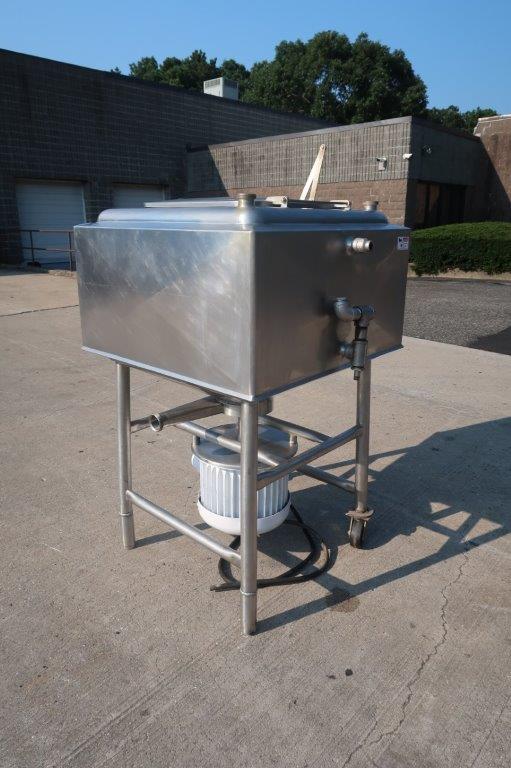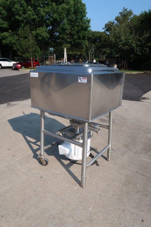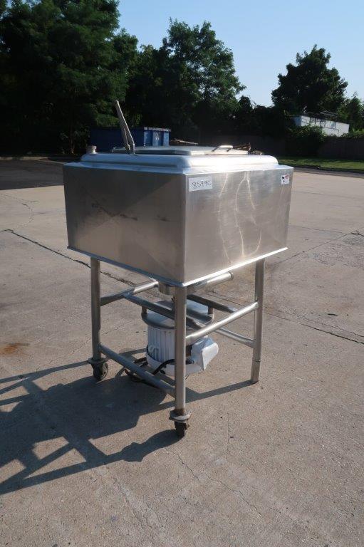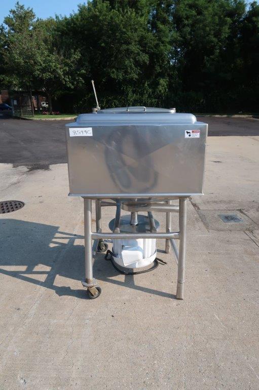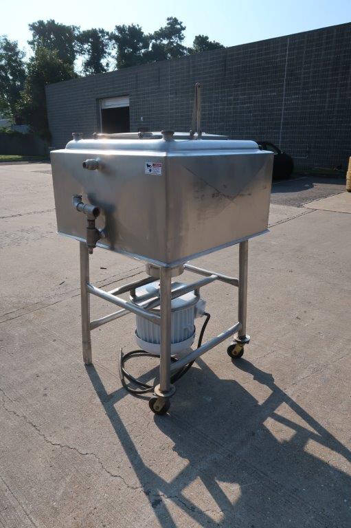 1-Used Breddo 100 Gallon Stainless Steel Jacketed Likwifier, S/N 898414. This jacketed unit has interior dimensions of approximately 34 In. Wide X 35 In. Long and has approx. 3 In. diameter discharge outlet. Equipped with 10 In. diameter high-speed impeller, underdriven by 15HP “Pancake” motor. Last used in the food industry. (Stock #8549C)