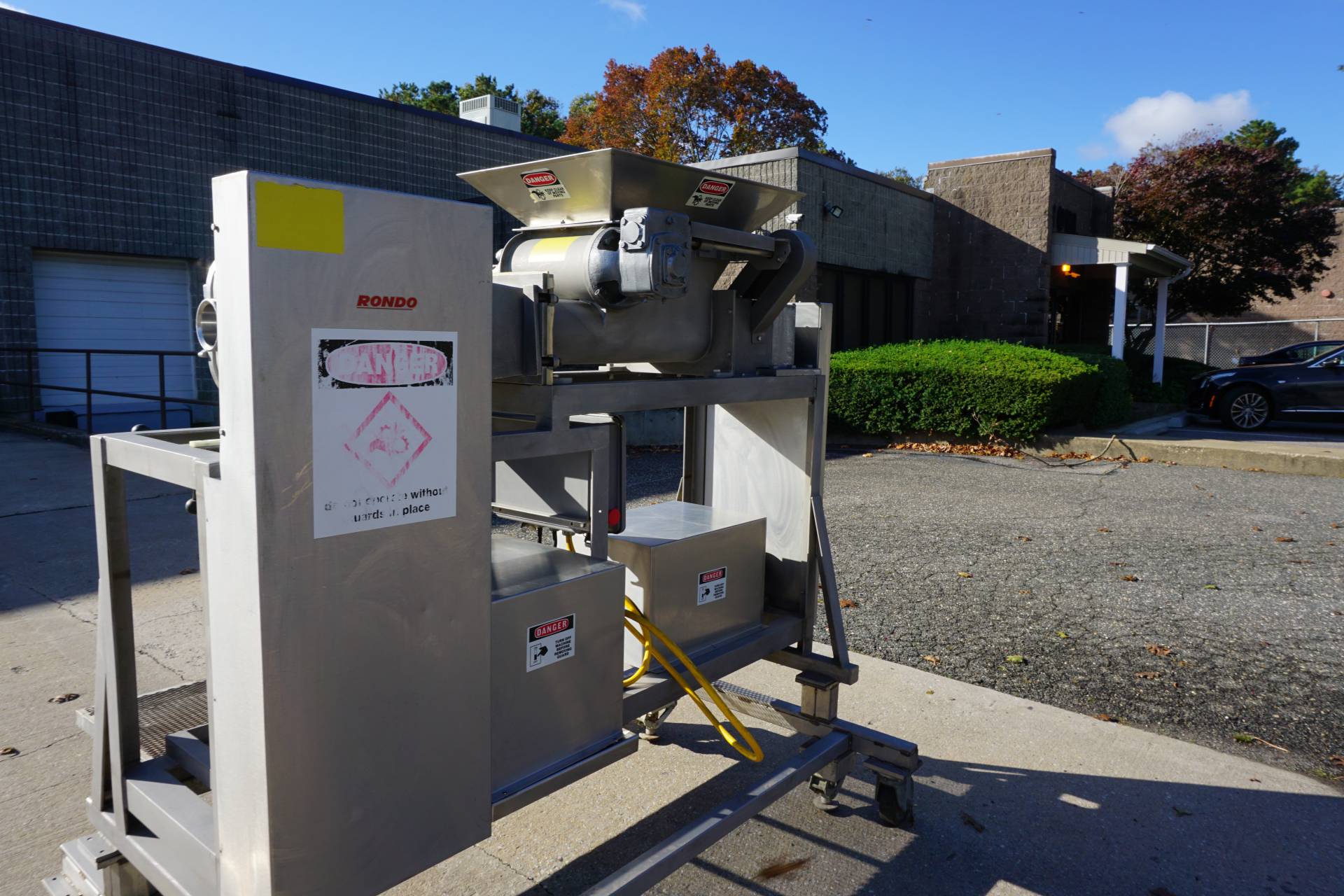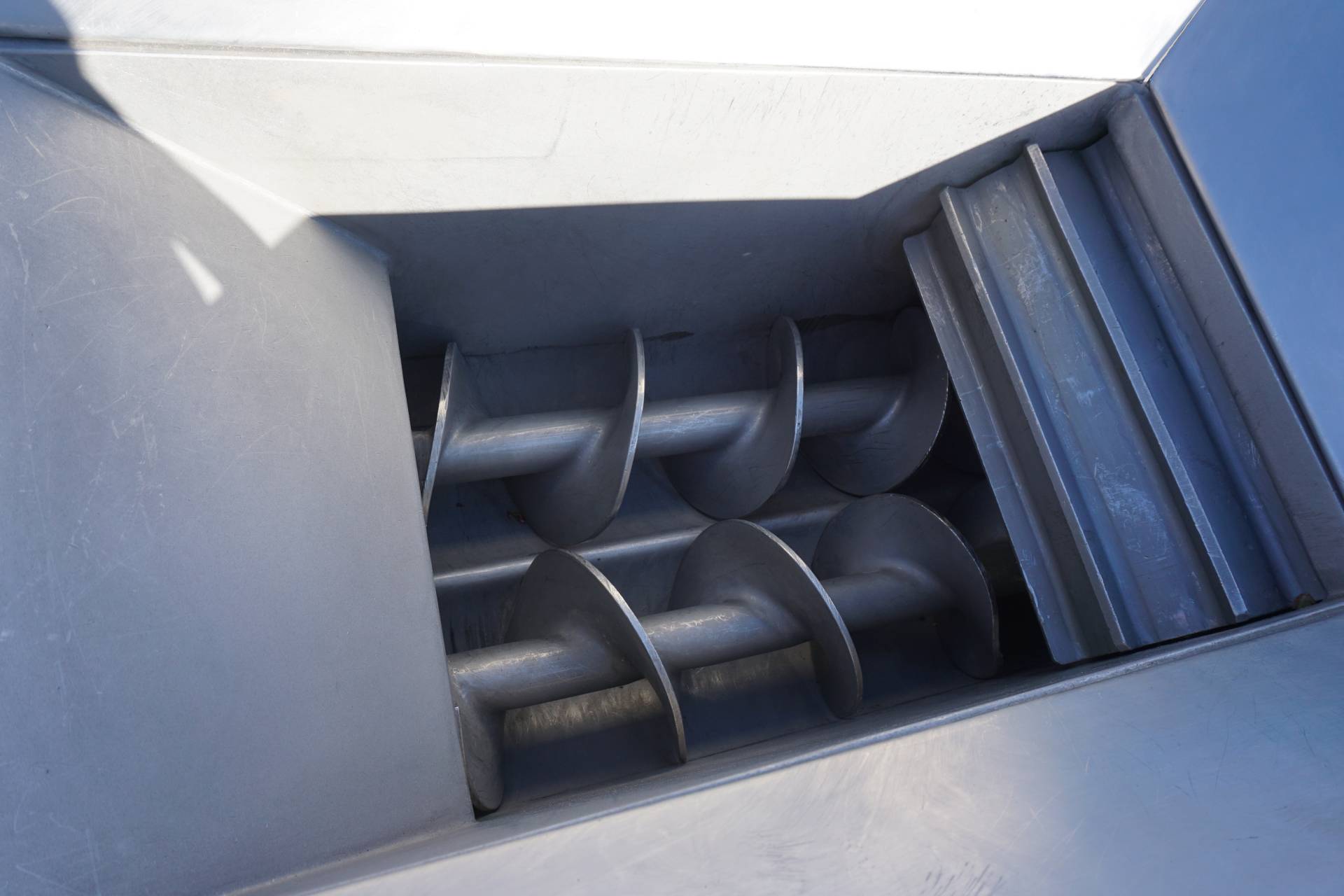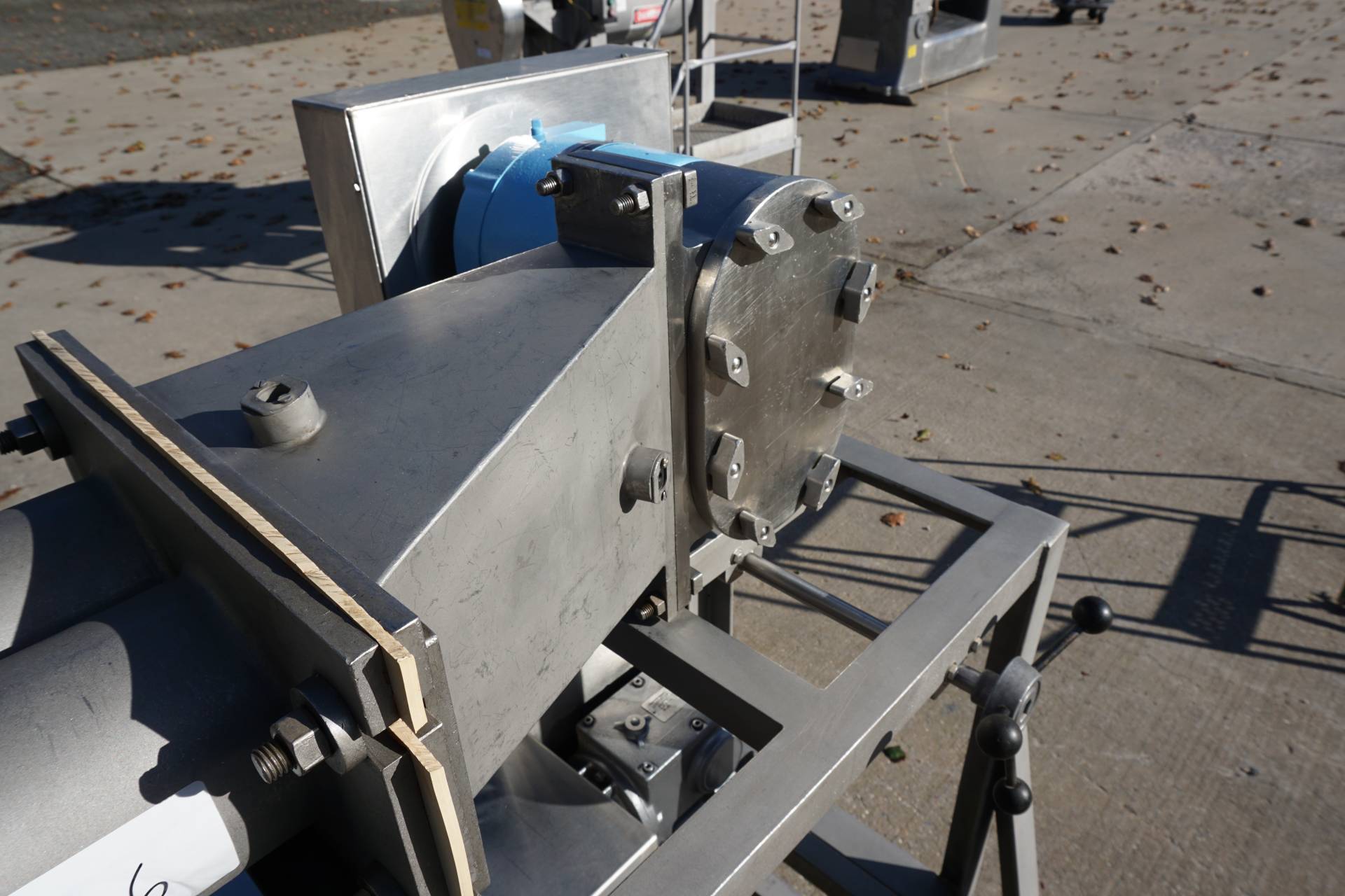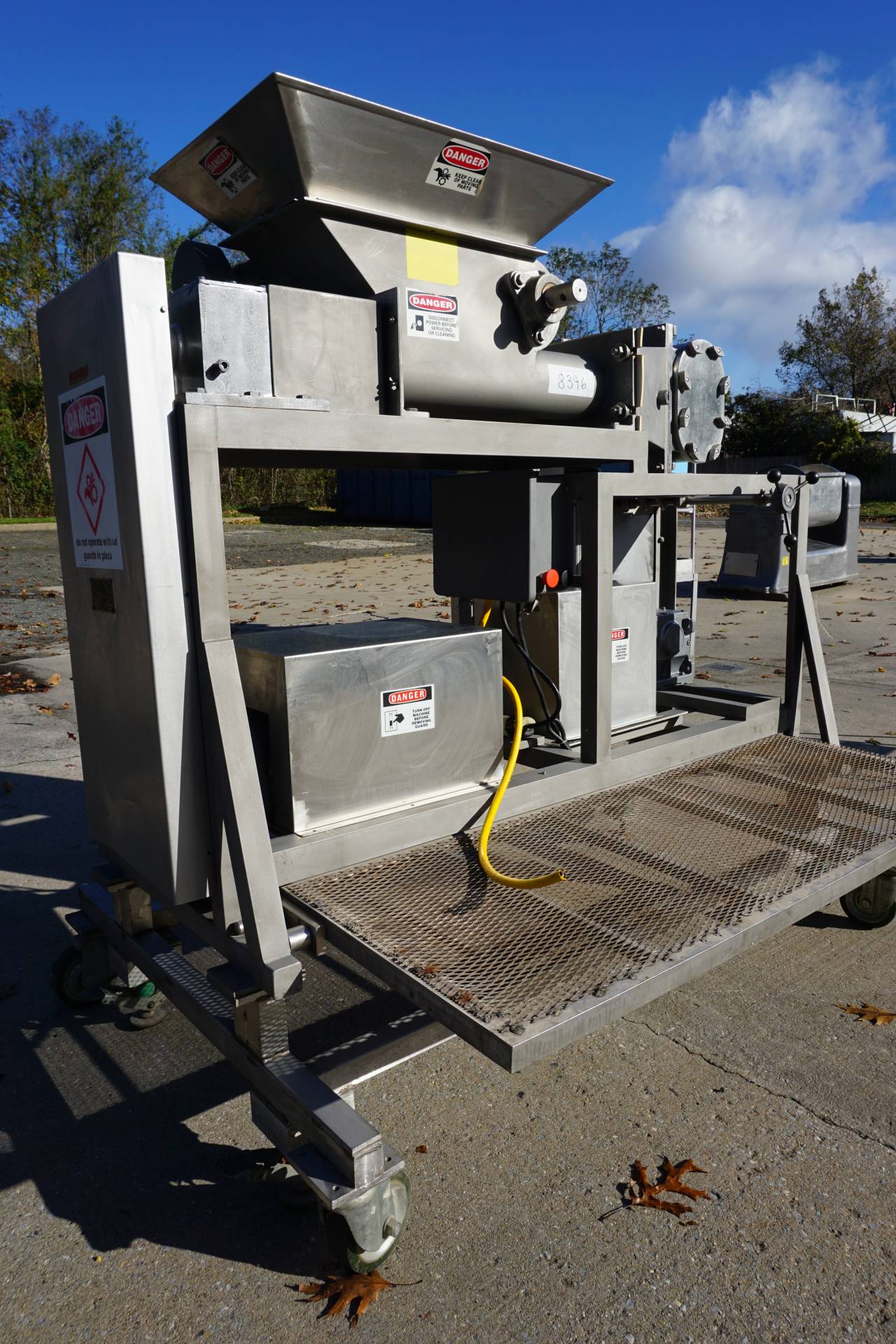 1-Used Doering & Son Model 3PFL Stainless Steel Twin Screw Pump Feeding System, S/N 7805. Designed for pumping extremely viscous products in the food industry, machine has Stainless Steel Top Feed Hopper with twin feed screws driven by Eurodrive variable speed motor. Also equipped with Tri-Clover Model PR125 Stainless Steel Positive Displacement Pump with approx. 3 in. diameter discharge separately driven by Eurodrive variable speed drive. Mounted on portable stainless steel base with casters, machine has on/off starter box. Electrical specifications 3/60/230-460 volt. Suitable for products like frozen ground meat, sausage, tortellini dough, chewing gum, butter, whole fruits and vegetables and other similar viscous products. (Stock # 8436)