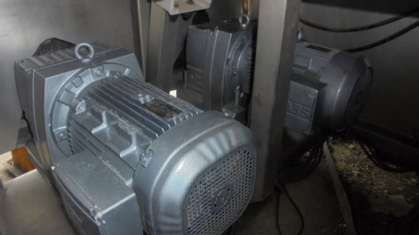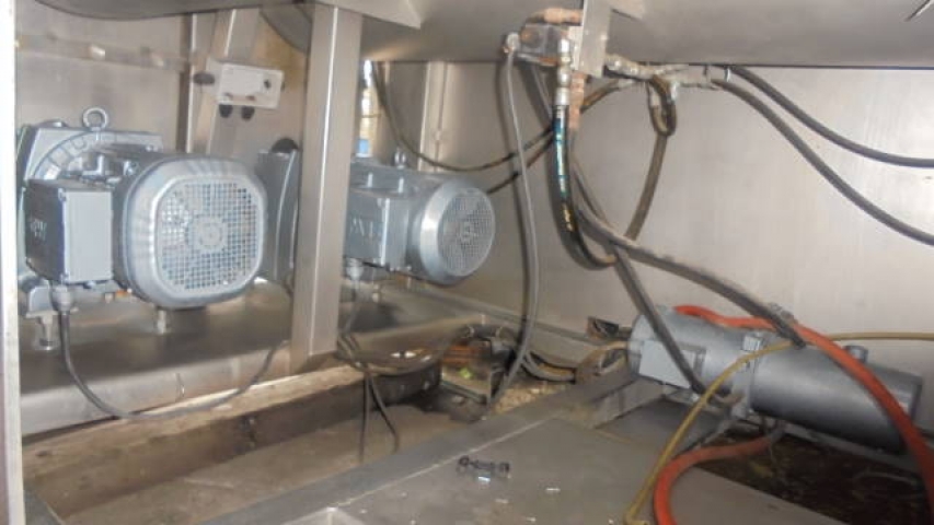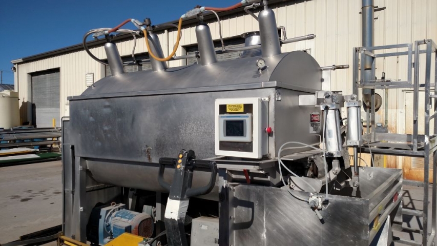 1-Used FPEC 2,500 Lb. capacity Stainless Steel Vacuum C02 Paddle Blender, Model 814. Last used in the meat industry, blender is totally stainless and has air operated dual end discharge doors, and pneumatically operated top dome cover with motor. With CO2 horns, safety guard for mixing chamber, and large exhaust port, blender is driven by two Eurodrive 15HP 3/60/230-460 volt motors. (Stock #8188)