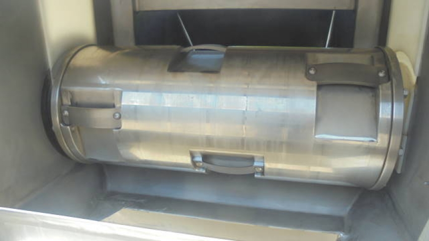 1-Used Genmac Model 2500 Hydrauflaker Combination Frozen Meat Block Flaker/Slicer Cutting drum measures approx. 14 In. Diameter x 29 In. Long. Machine is suitable for reducing frozen or hard blocks of meat, poultry, fish, cheese, chocolate, etc. With stainless steel cabinetry, machine was last used at major food processing facility. Driven by 10HP 3/60/220 volt motor (Stock #8193C)