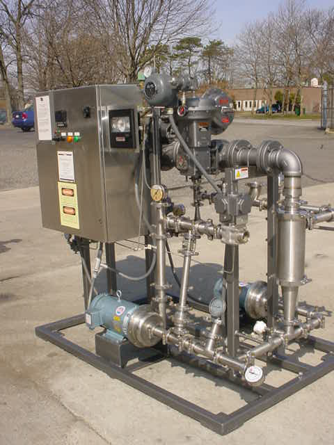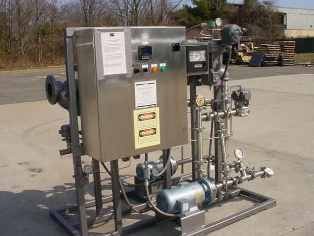 1-Used pick c.i.p. Heating system model sc50/1031, s/n 0599-06. With stainless steel control panel with digital display, system has 7.5 hp and 1 hp stainless steel sanitary centrifugal pumps, 3/60/208-230-460 volt. With miscellaneous piping, valves, gauges, etc. Mounted on self-contained skid.