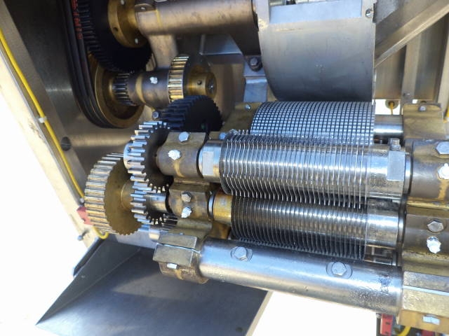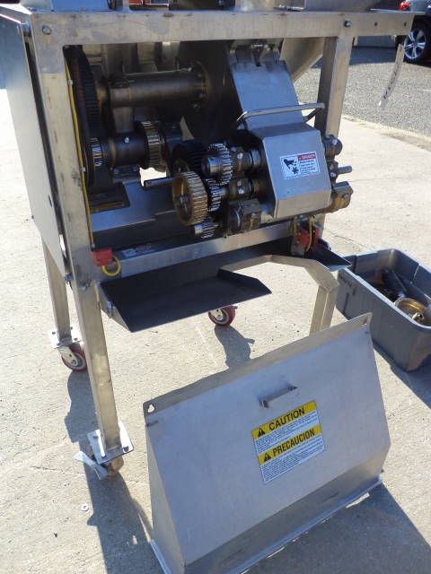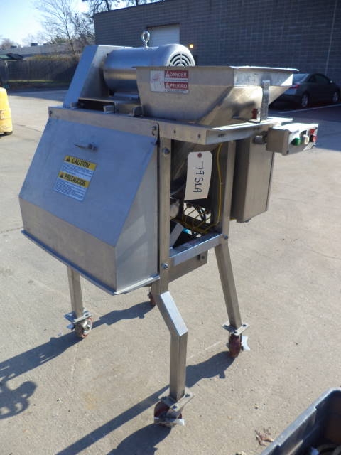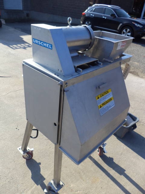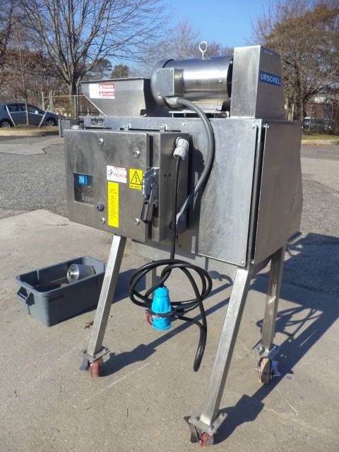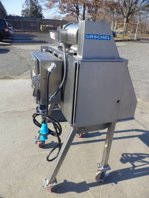 1-Used Urschel RA-D Stainless Steel Dicer, S/N 2647. Mounted on stainless steel stand with casters, the model RA-D is often used in the cheese industry for producing from small to intermediate size dices and strip cuts,as well. With stainless steel hopper, Machine is driven by Baldor 5 HP 3/60/220-240/460 volt stainless steel motor. Capable of production rates from 5,000 to 8,000 pounds per hour, depending on product. (Stock #7951A)