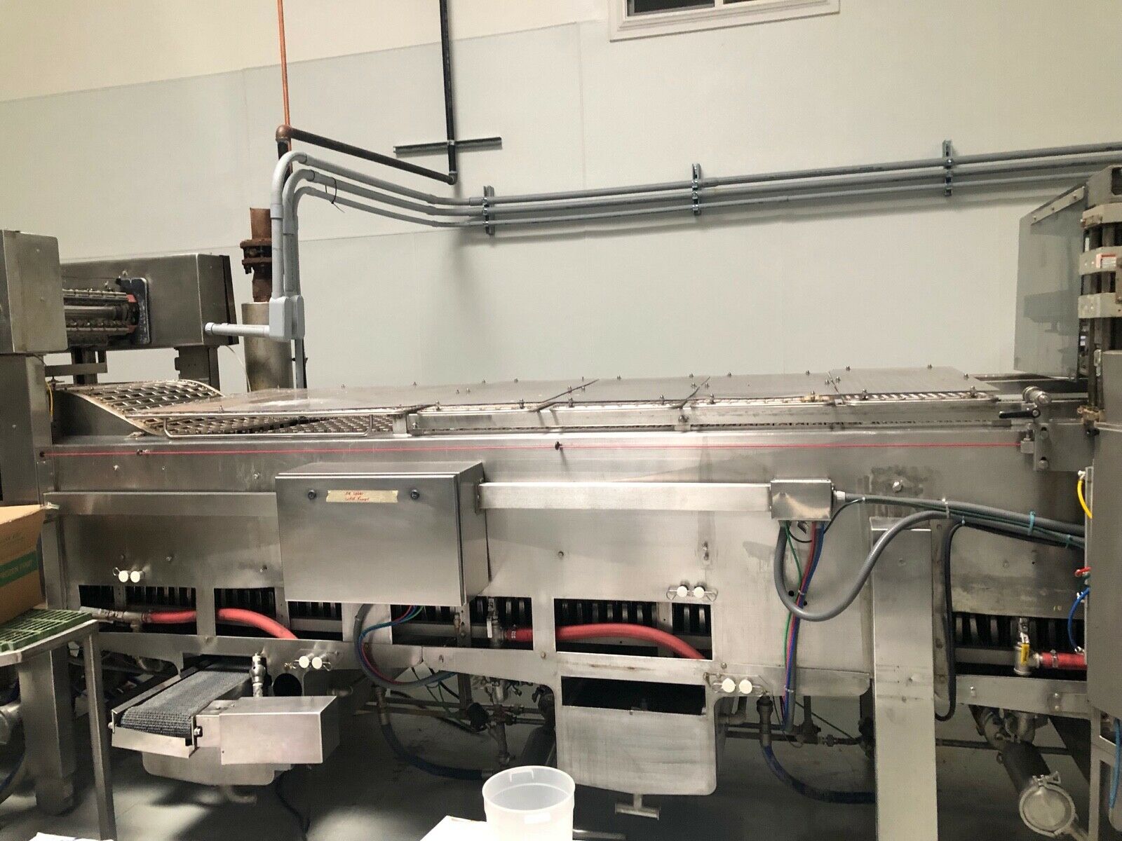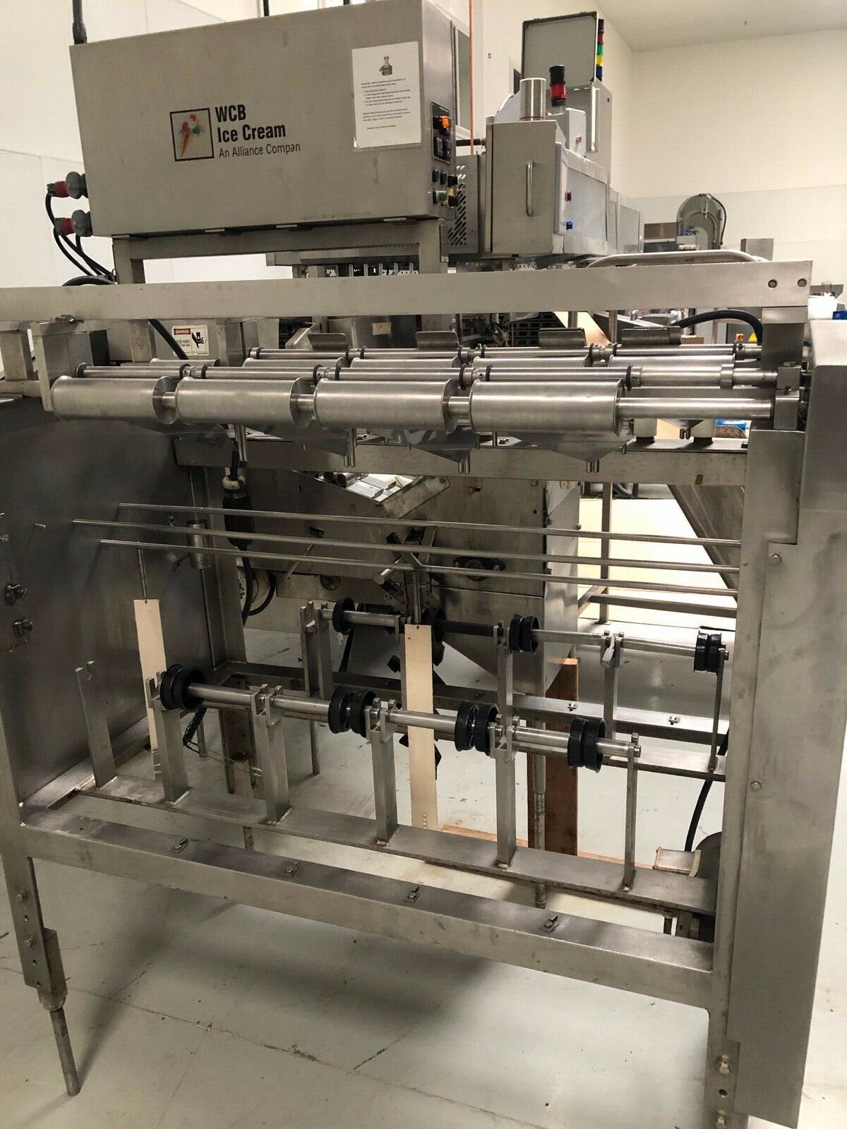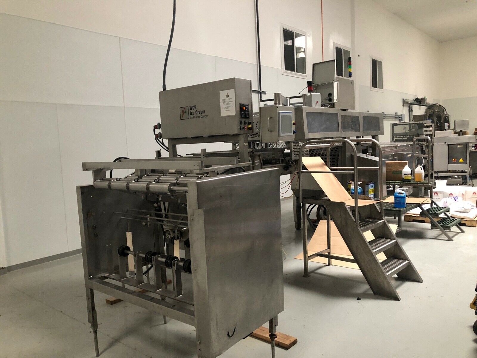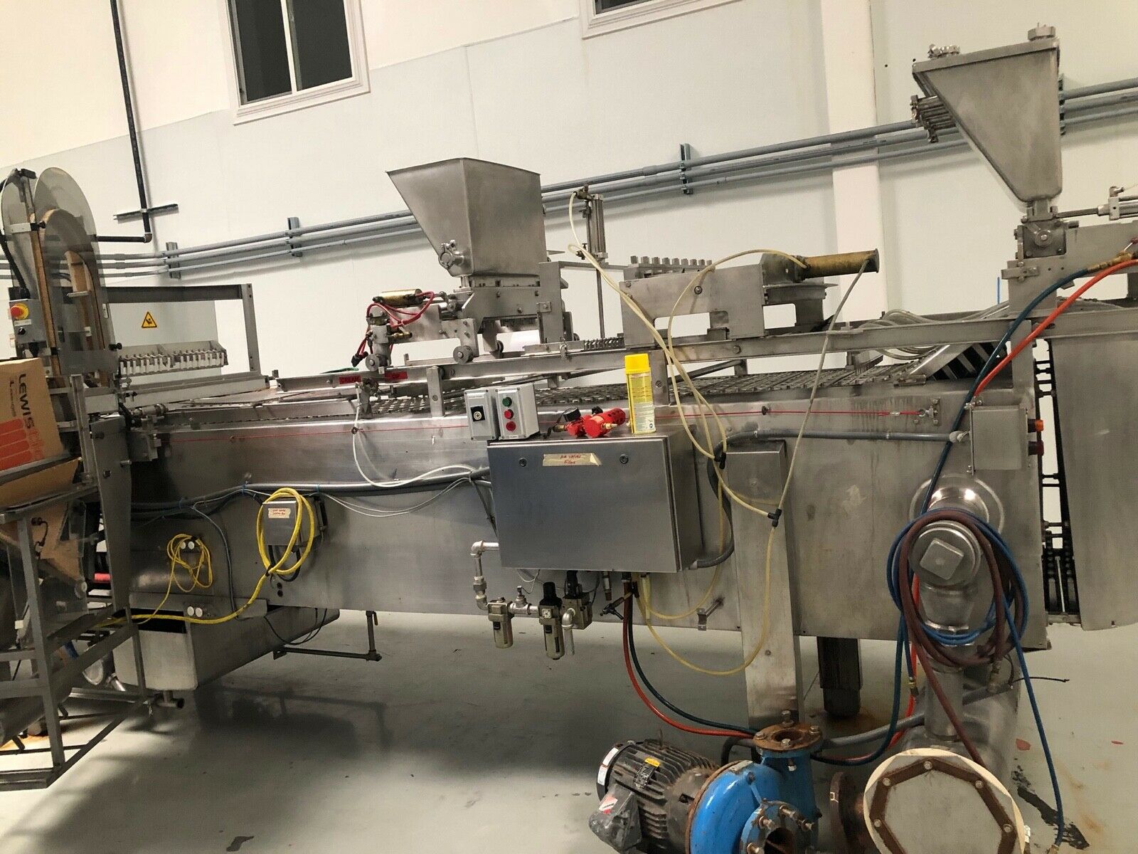 1-Used Vita Line 8 Wide Automatic Ice Cream Bar  Line.  Capable of up to 10,000 bars per hour, Line has new HMI Screen and Servo Drives with new upgrade components.   Line comes equipped with one set of molds and Automatic Stick and Wrapper.  Overall dimensions approx. 8 ft. wide X 32 ft. long.  Does not come equipped with  Compressors or Condensing Unit.  (Stock #L1370)