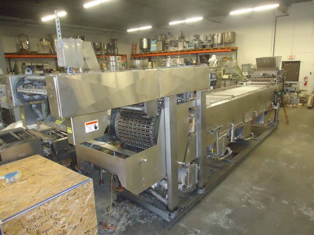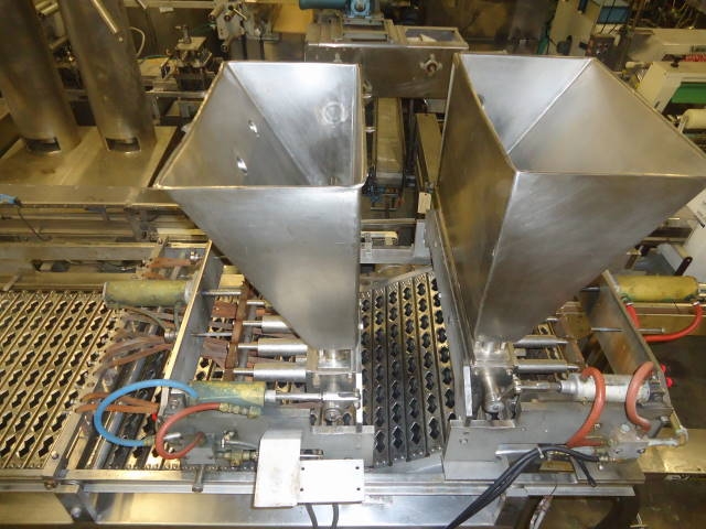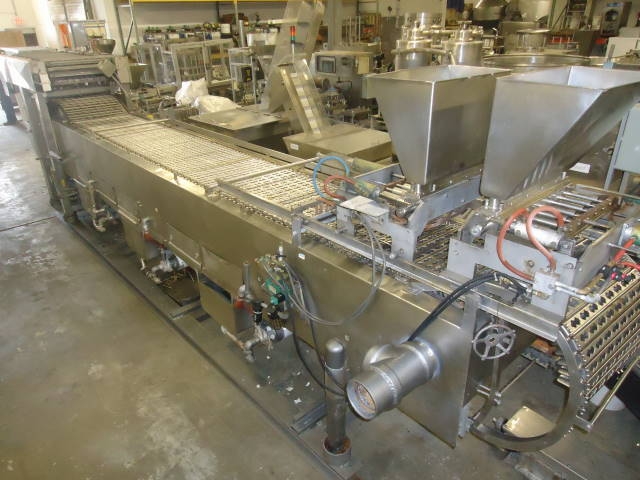 1-USED VITALINE EIGHT WIDE STICK NOVELTY LINE. WITH STAINLESS STEEL FRAME, LINE HAS TWIN FEED HOPPERS AND WAS LAST USED FOR "TWIN POP" POPSICLES. LINE COMES EQUIPPED WITH ANDERSON POPSICLE WRAPPER WITH RACK, POPSICLE STACKER AND ASSORTED SANITARY CENTRIFUGAL PUMPS. ALSO SUPPLIED WITH ADDITIONAL HOPPERS AND ACCESSORIES. (STOCK # 7545)