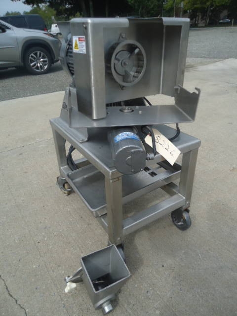 1-Used Urschel Model 3600 Comitrol Machine S/N 372. Mounted on portable stainless steel base with casters, Machine driven by 10 HP 3/60/220-440 volt electric motor. With stainless steel feed tray, there is a separate fractional horsepower motor that drives the product feed screw. Machine has stainless steel starter box and is equipped with one (1) cutting head (additional cutting heads available at additional cost). (Stock # 8226)