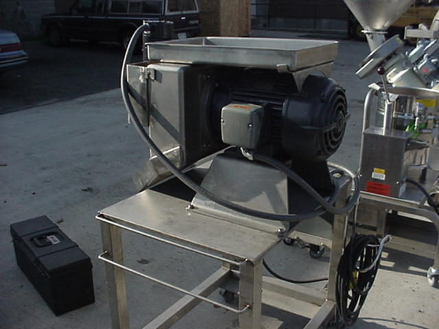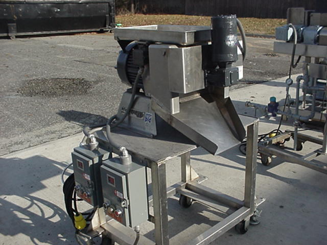 1-Used urschel model 3600 comitrol machine, serial #185. Mounted on portable stainless steel base with casters, unit is driven by 10hp 3/60/220-440 volt electric motor. With stainless steel feed tray, machine has stainless steel screw feeder separately driven by fractional hp motor. With pushbutton starters, unit can be supplied with a variety of assorted cutting heads.