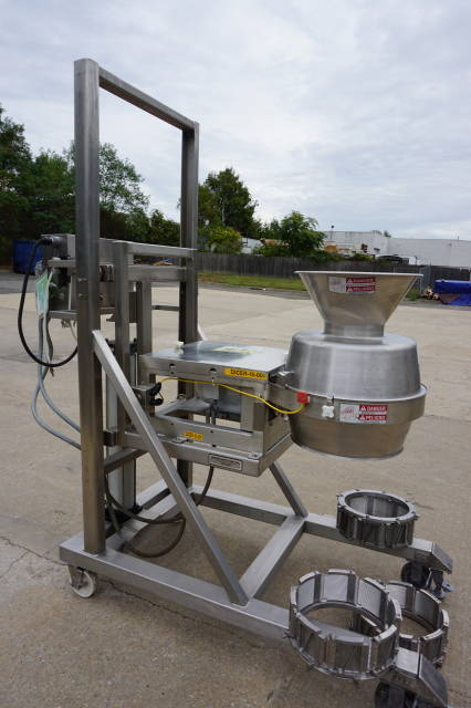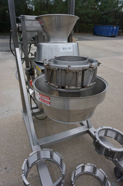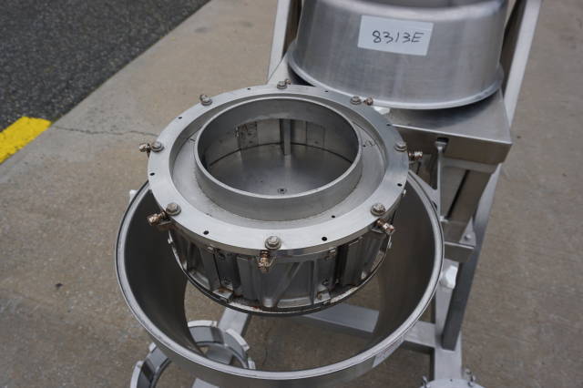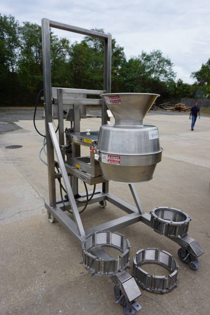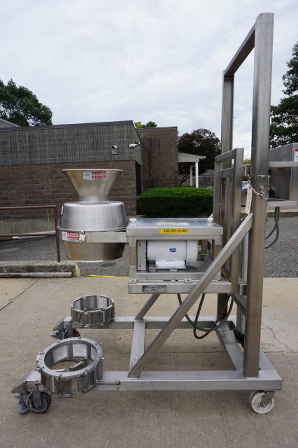 1-Used Urschel Model CC-D Stainless Steel Shredder/Slicer/Strip Cutter, S/N 3857. Mounted on stainless steel portable stand with casters, machine has top mounted stainless product hopper. Unit driven by 7.5 HP 3/60/208-230/460 volt motor. With self-contained pneumatic cylinder for automatic raising and lowering of machine body, machine can be supplied with choice of cutting heads. Equipped with stainless Steel starter box. (Stock #8313 E)