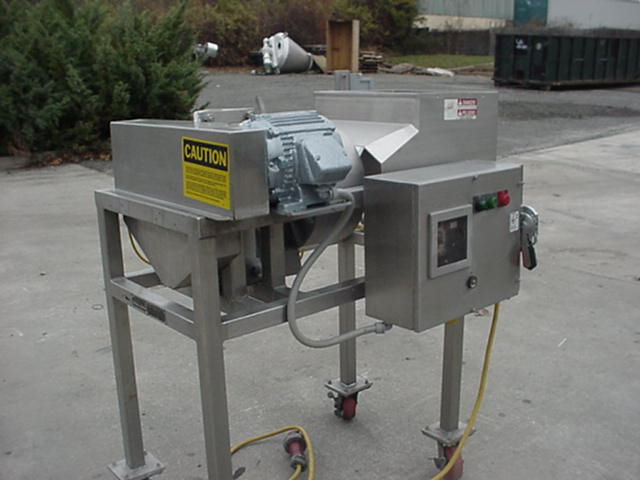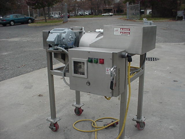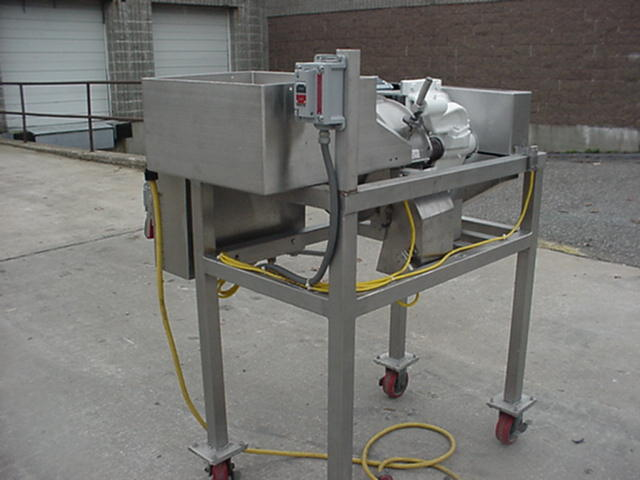1-USED URSCHEL MODEL HS-90 CENTRIFUGAL SLICER, S/N 200. ON PORTABLE STAINLESS STEEL BASE WITH CASTERS, UNIT HAS SELF-CONTAINED STAINLESS STEEL ENCLOSED CONTROL PANEL AND IS DRIVEN BY 2 HP 3/60/208-220-440 VOLT MOTOR. (Stock # 6826E)