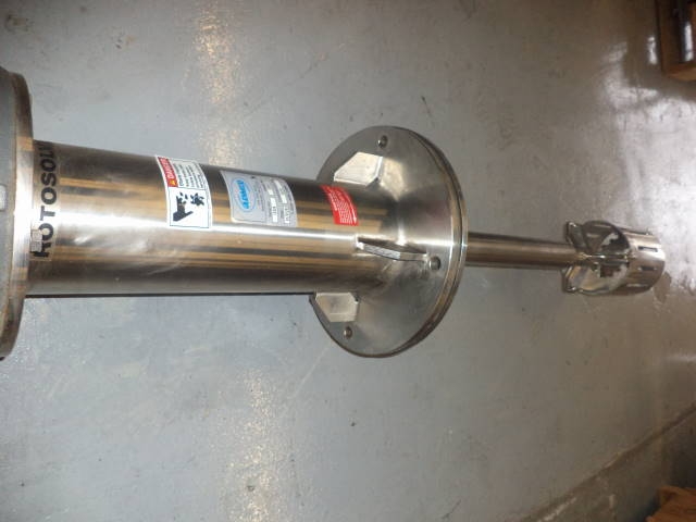 1-Used Admix “Rotosolver” Model 180RS175SS stainless steel high shear mixer, S/N 13428.  Equipped with approximately 7 in. diameter head/rotor, mixer is driven by 30HP, 3/60/230-460 volt motor. (Stock #7953V)