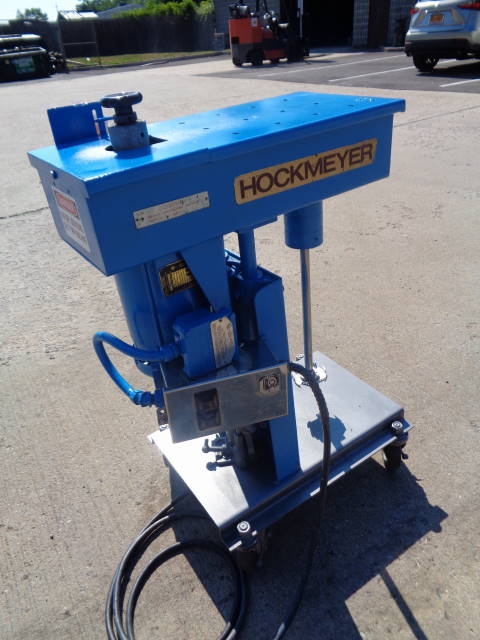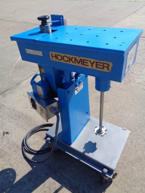 1-Used Hockmeyer Model 2L Lab Disperser, S/N 84-5610.  Mounted on portable base with casters, Disperser driven by 2 HP 3/60/230-460 volt motor.  Equipped with shaft and approx. 4 in. diameter high speed cutting blade.   (Stock #8015H)