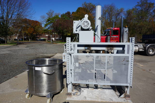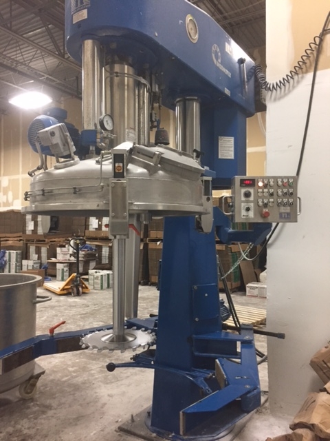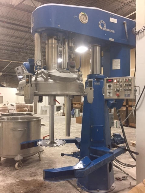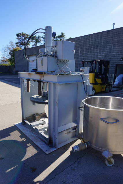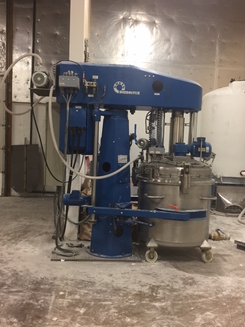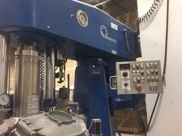 1-Used niemann kreis model vkdv 491-49 vacuum dissolver, serial #002681. Numerous features include scraper blade, dispersion disc and two (2) 400 litre stainless steel portable change cans. Equipment suitable for mixing, dispersing, dissolving and evacuating of numerous high viscosity products. With automatic lift of agitation, electrical requirement 220volt and 440volt. Further specifications available upon request. Can be supplied with press shown in photos for discharge of product. (stock# 7754f)