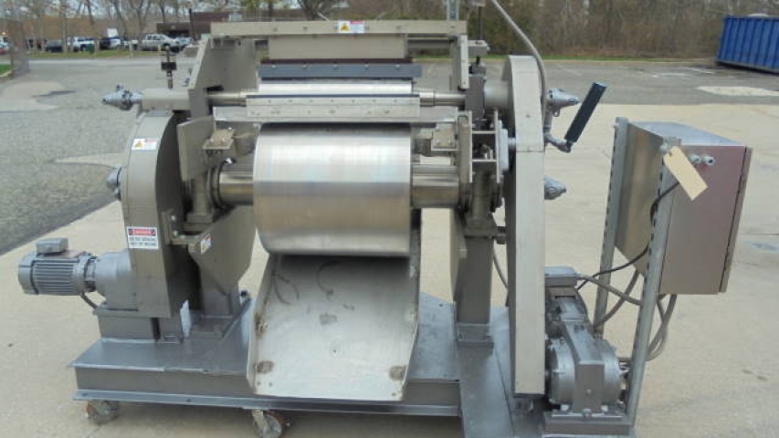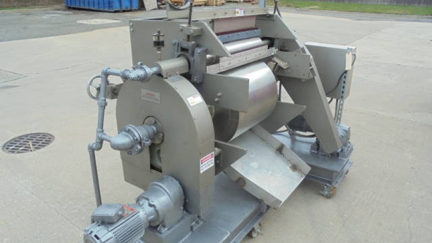 1-Used Buflovak approx. 24 in. X 24 in. Stainless Steel Double Drum Flaker, S/N 18854, Shop Order # 15-60166. Flaker driven by 2 HP 3/60/230-460 volt gear motor. Equipped with Knife assembly, unit last used in Lever R & D Division. (Stock #8022i)