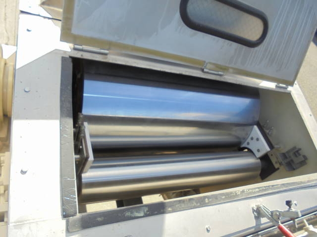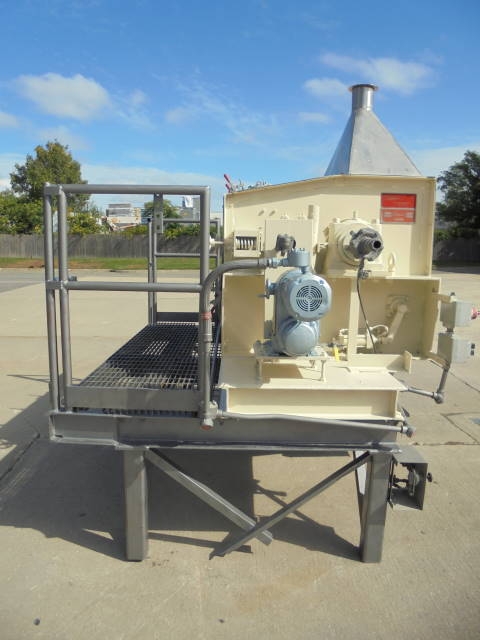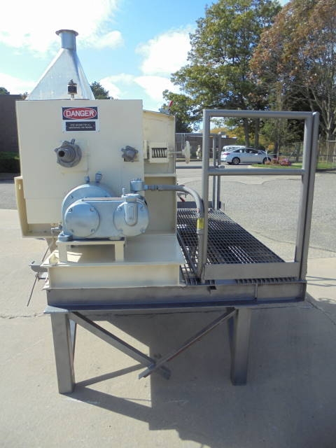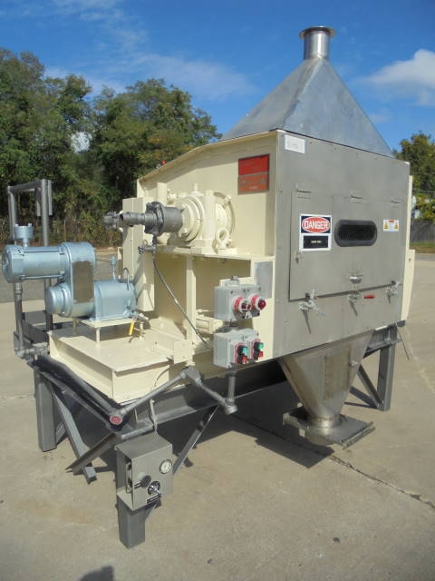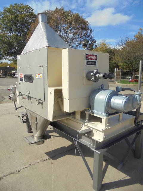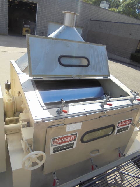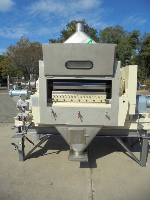 1-Used Buflovak Drum Flaker/Dryer, S/N 18486, S.O. #15-47705. Equipped with 24 in. diameter x 36 in. long drum, machine has cored roll, and two Reeves Explosion Proof variable speed drives. With pneumatic knife discharge adjustment, unit has catwalk and start/stop buttons. Last used in food application. With top mounted stainless hood and bottom discharge housing/pan with slide gate (Stock #8146)