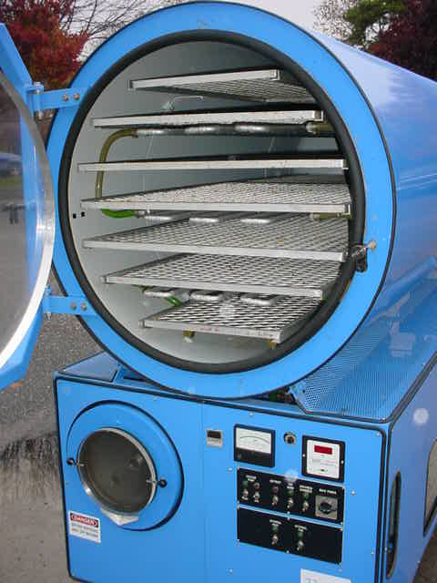 1-Used northstar model l3680 freeze drying system, s/n 1838. With approx. 26 trays located on seven (7) levels. Product chamber measures approx. 36″ diameter x 82″ long, providing for approx. 90 sq.ft. Surface area. System includes self-contained refrigeration compressor, vacuum pump, digital temperature readout, ice bank, etc. On casters for portability, electrical specifications: single phase, 60 cycle, 230 volt.