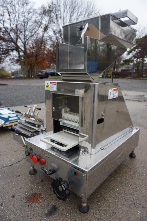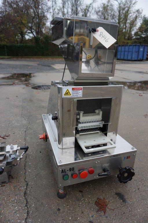 1-Used PAM Pharmaceutical Bench Top Semi-Automatic Encapsulating System, S/N 713. This System consists of a Model MF-30 Filling Machine and an AL-90 Automatic Loader. The MF-30 has an output of 7,200 capsules per hour when used with the AL-90. Supplied with a large volume of tooling shown in the photographs. This System is ideal for small manufacturers, contract manufacturers, hospitals and pharmacies. (Stock #8446)