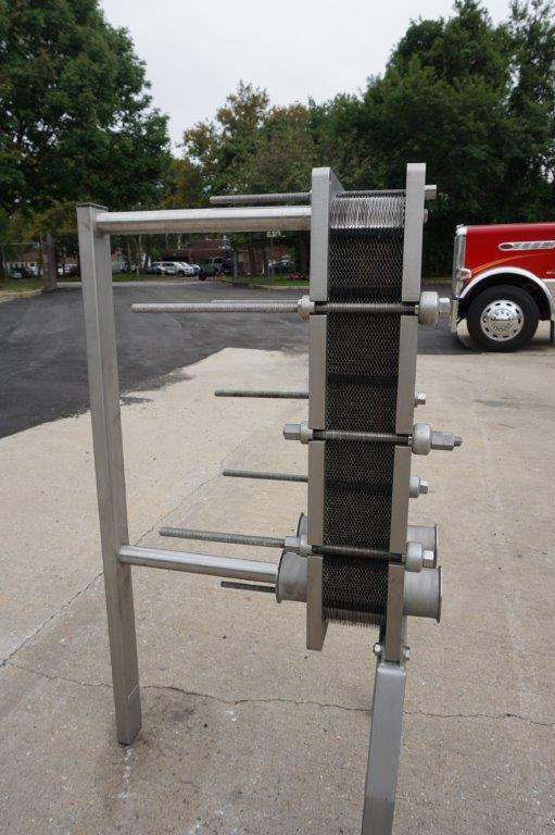 1-Used Alfa Laval Approx. 41 Plate Stainless Steel Heat Exchanger, Model MD-BBASE, S/N 30112-52989. Rated 100.8 Sq. Ft. surface area, 145 PSI @248 Deg. F. Last used in the food industry. (Stock #8554J)