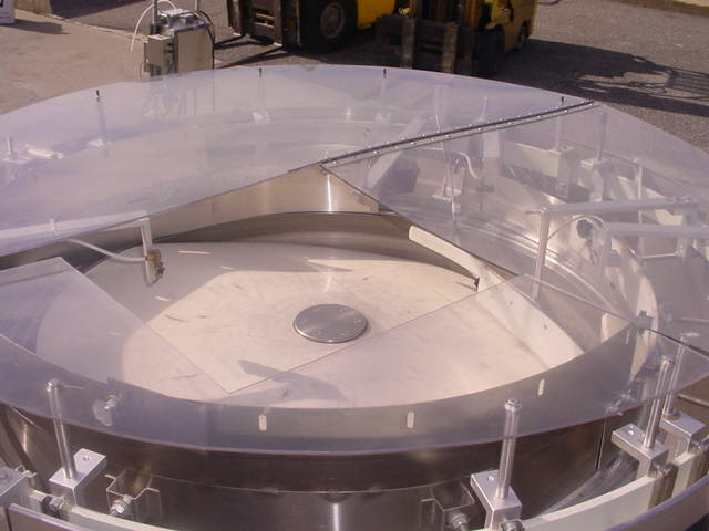 1-Used hoppmann corporation model ft-50 stainless steel centrifugal feeder, s/n 3457. Last feeding plastic jars at pharmaceutical packaging facility, unit comes equipped with chute. Full details available upon request. (stock# 7189c)