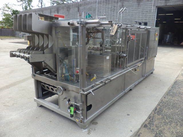 1-Used Packaging Technologies “Holmatic” Model OF-2340 Four Lane “Opti-Fil”Cup/Tray Filling/Sealing/Overcapping System, S/N 74997. Rated up to 200 containers per minute, this CIP capable System has automatic cup feeder. System presently set for cup measuring approximately 3-1/4 in. diameter. Equipped with four position piston filling, machine has all stainless steel construction and fills, seals and overcaps. Last used for packaging butter and margarine products at major food manufacturer. Equipped with Operating Manual. (Stock #7895A)