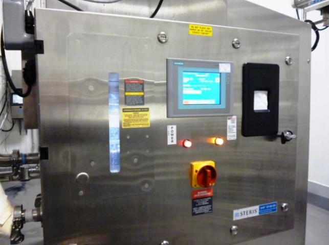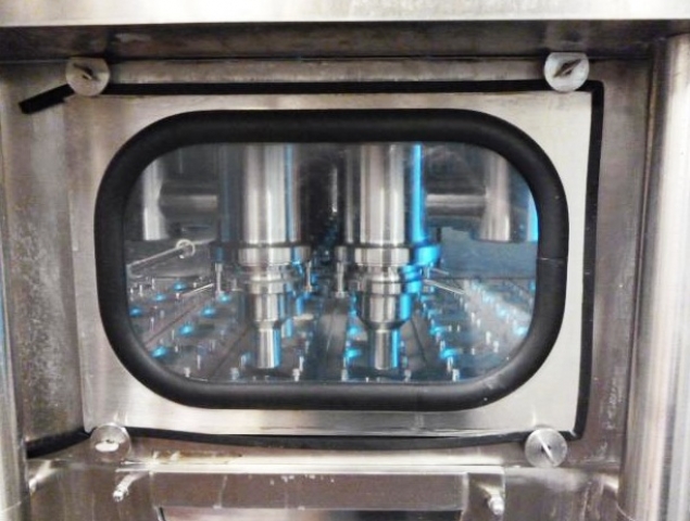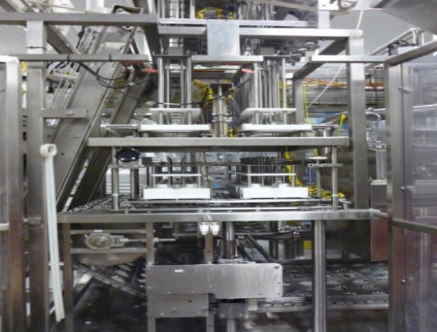 1-Used Osgood 6 lane “Ultraclean” automatic yogurt cup filling and sealing machine. Rated up to 360 cups per minute, this double indexing filler is currently set for 80mm diameter cups. Equipped with sterile filtration, heat exchanger, spray tank and electronic interface, machine has CIP on the filling stations. (Stock# L1179)